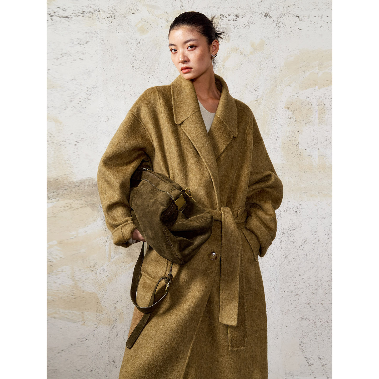 悦戎带里衬山羊绒大衣女中长款 秋冬羊毛呢外套女加厚101801大衣