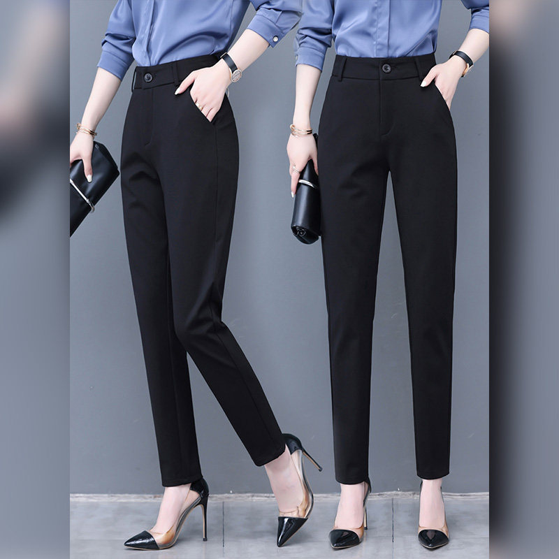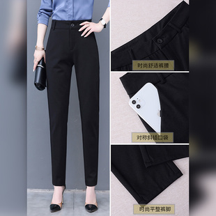 子女秋冬季 显瘦高腰春秋哈伦裤 黑色职业西装 休闲长裤 女裤 啄木鸟裤