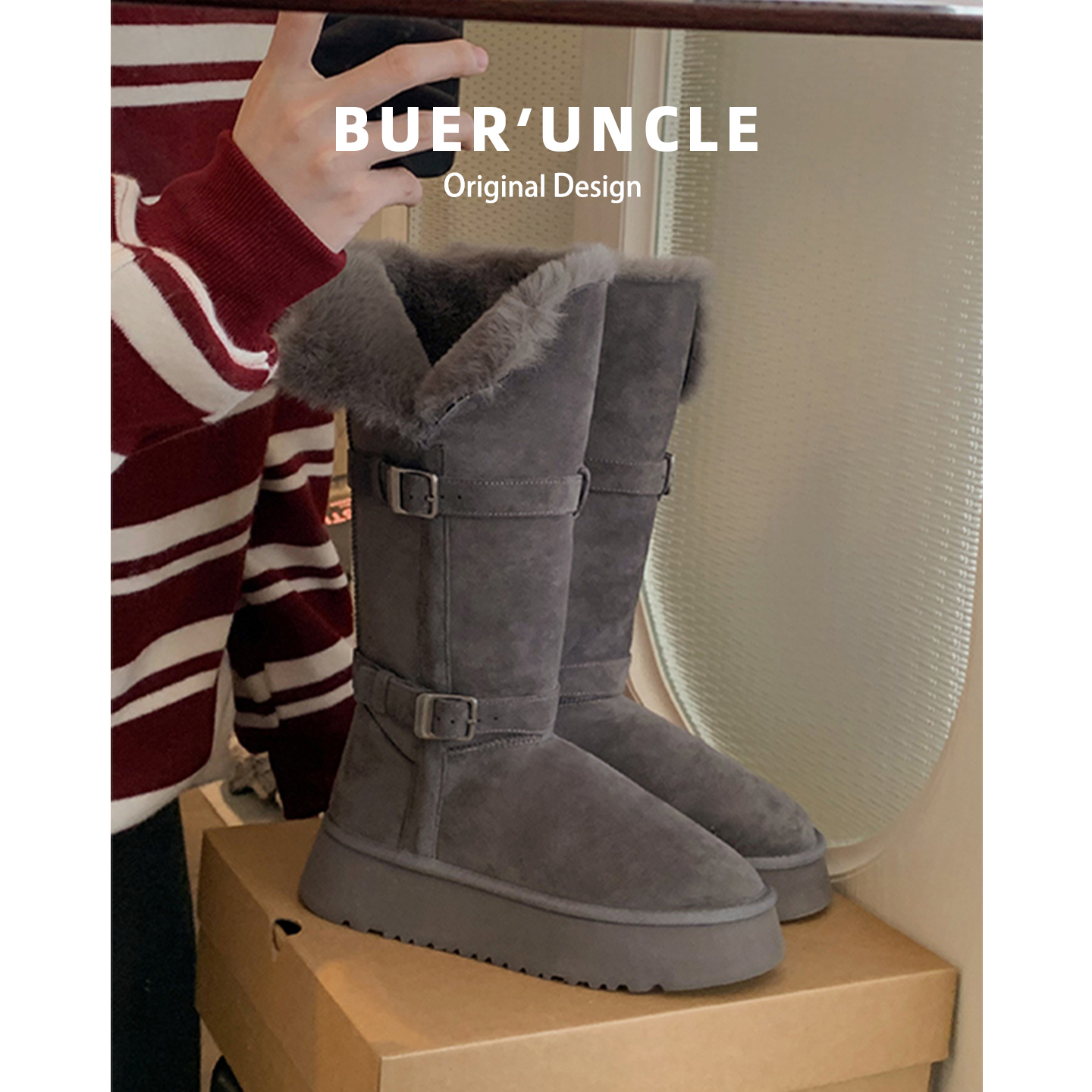 加绒加厚保暖中筒厚底东北长筒棉鞋 2025新款 雪地靴女冬季 羊皮版