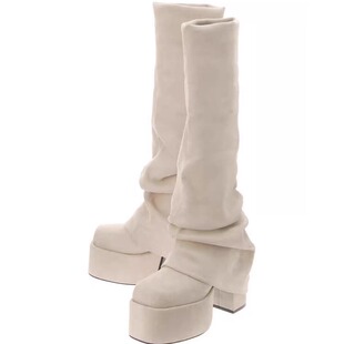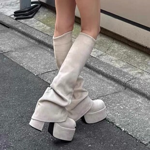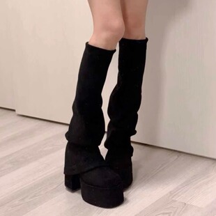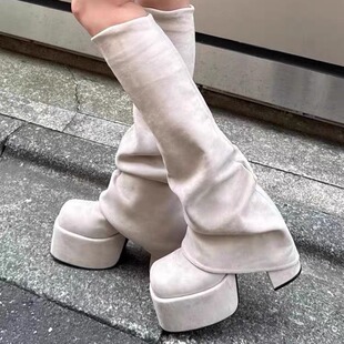 方头高筒靴显瘦弹力瘦瘦靴女 新款 日系厚底高跟辣妹裤 管靴2026春季