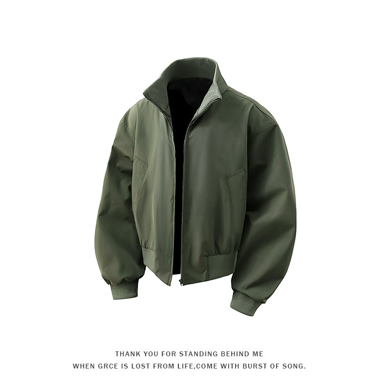 PTOFF雪尼尔天丝哈灵顿翻领纹理棉服秋冬款 夹克外套 口袋廓形短款