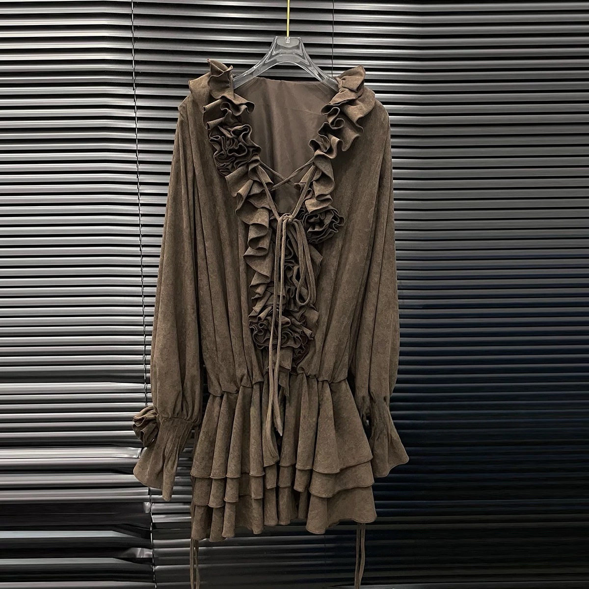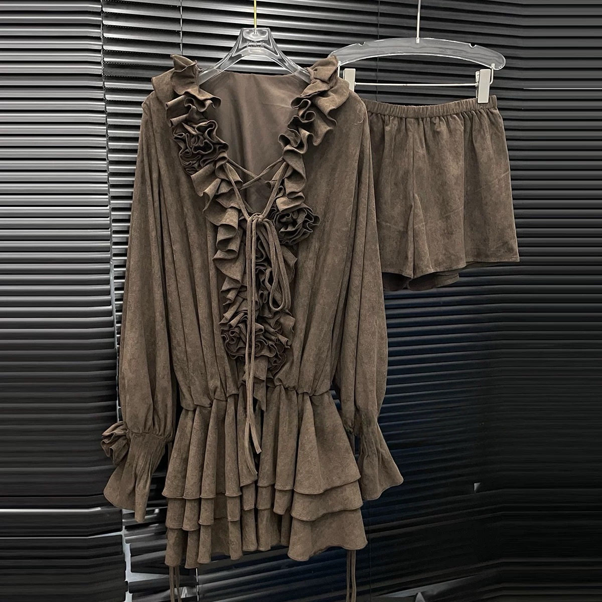 连衣裙短裤 EAM 木耳边抽绳衬衫 麂皮绒 两件套 STUDIO2025秋冬新款