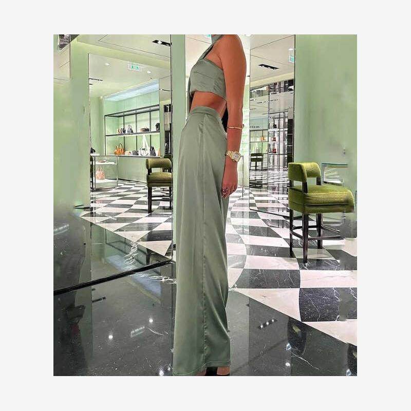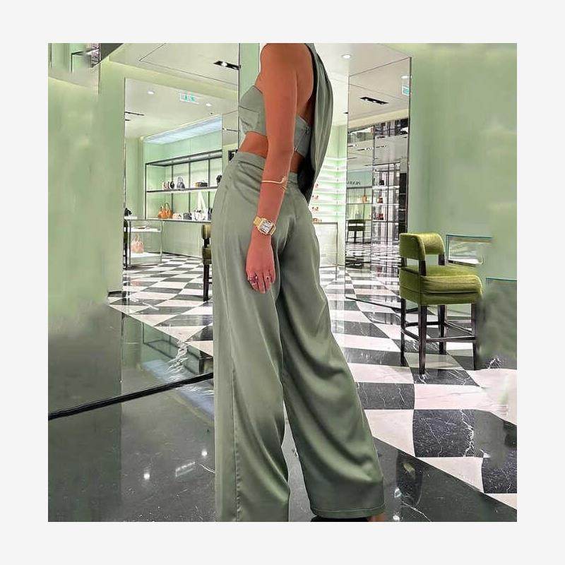 Shoulder Bra Wide 斜肩抹胸阔腿裤 Pants Oblique Leg Set 套装