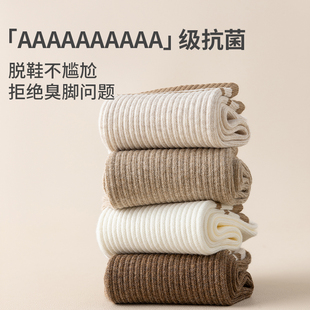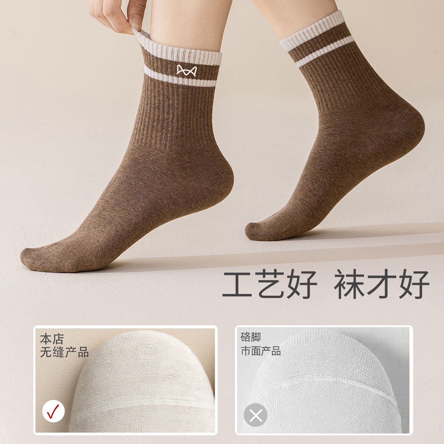 猫人袜子女款 纯棉防臭加厚保暖长袜吸汗透气防滑条纹中筒袜 秋冬季