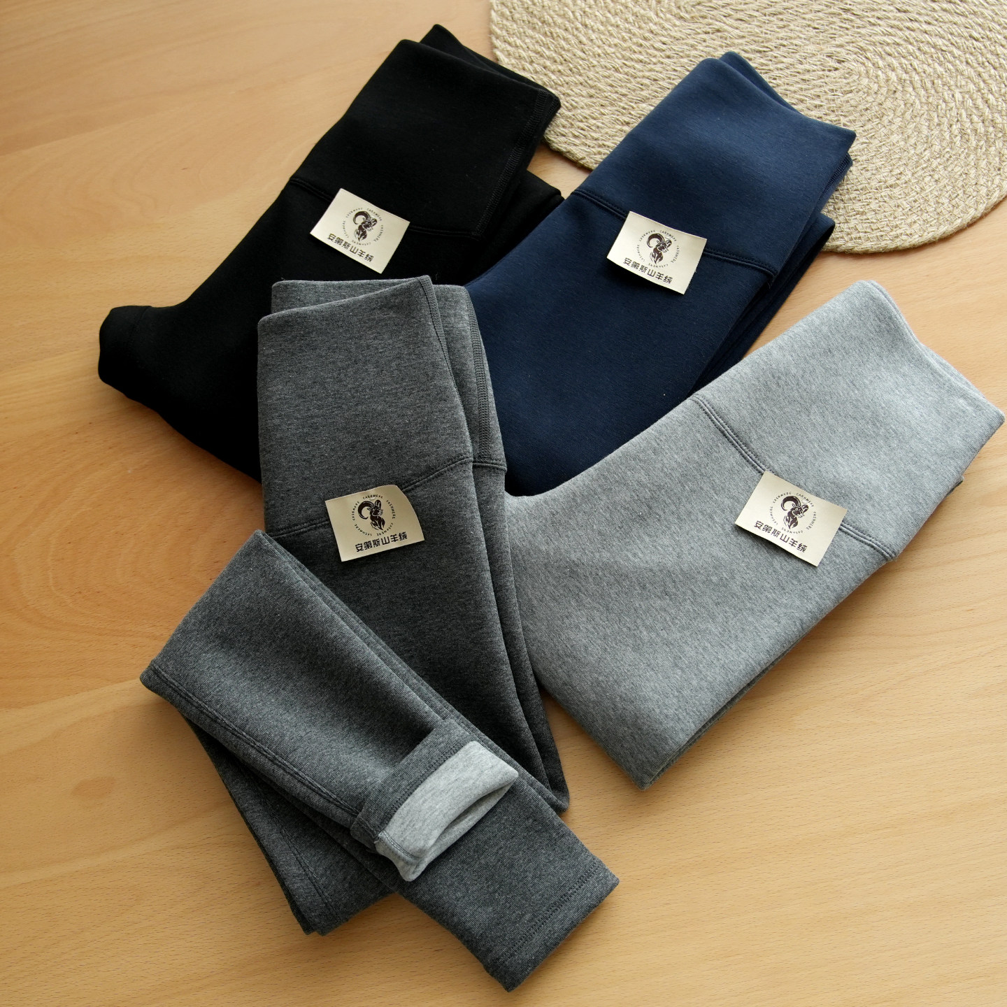 冬款 长裤 纯色加绒修身 安第斯山羊绒女士高腰哑光针织薄绒打底裤