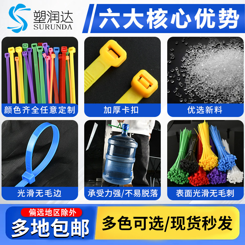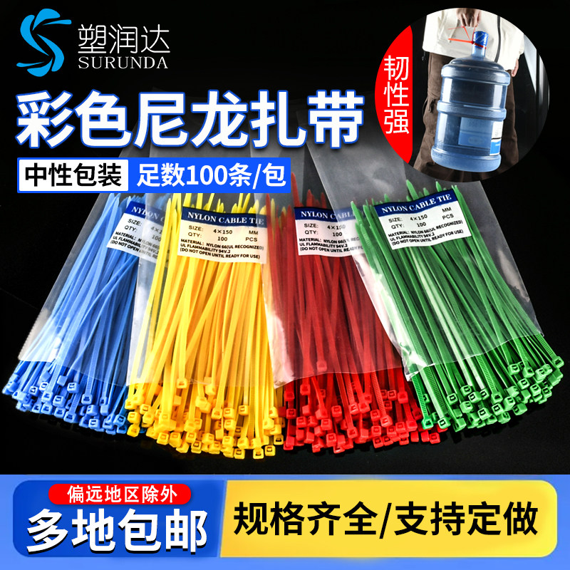 国标彩色尼龙扎带红色绿色蓝色黄色塑料绳捆绑捆扎带强力固定卡扣