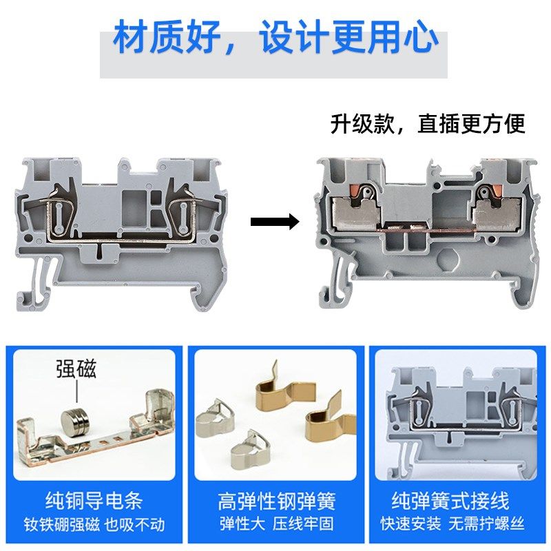 ST10平方弹簧式 PE导轨组合接地排免螺丝PT16 导轨接线端子排PT10