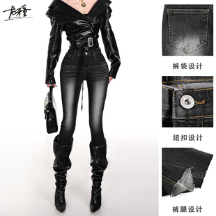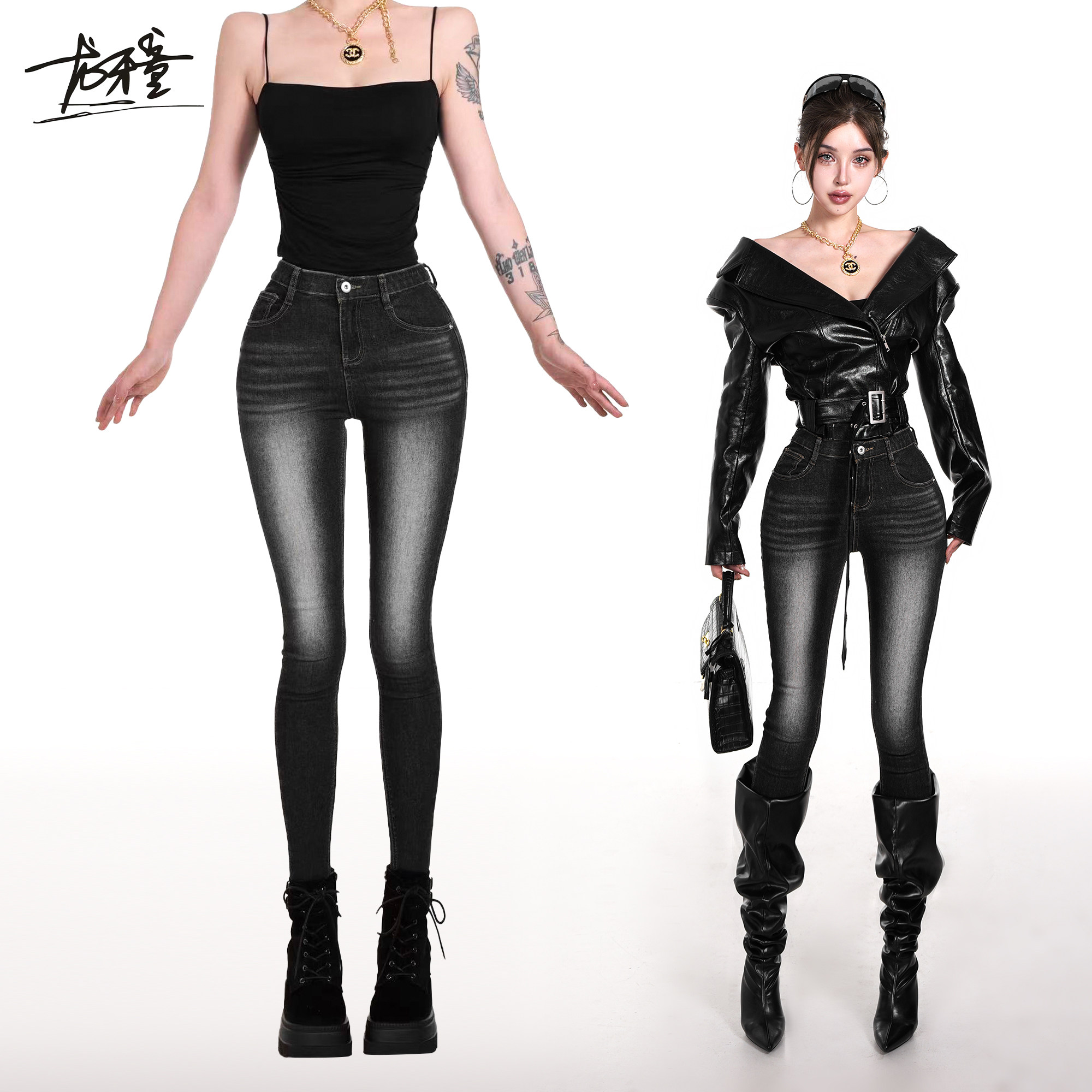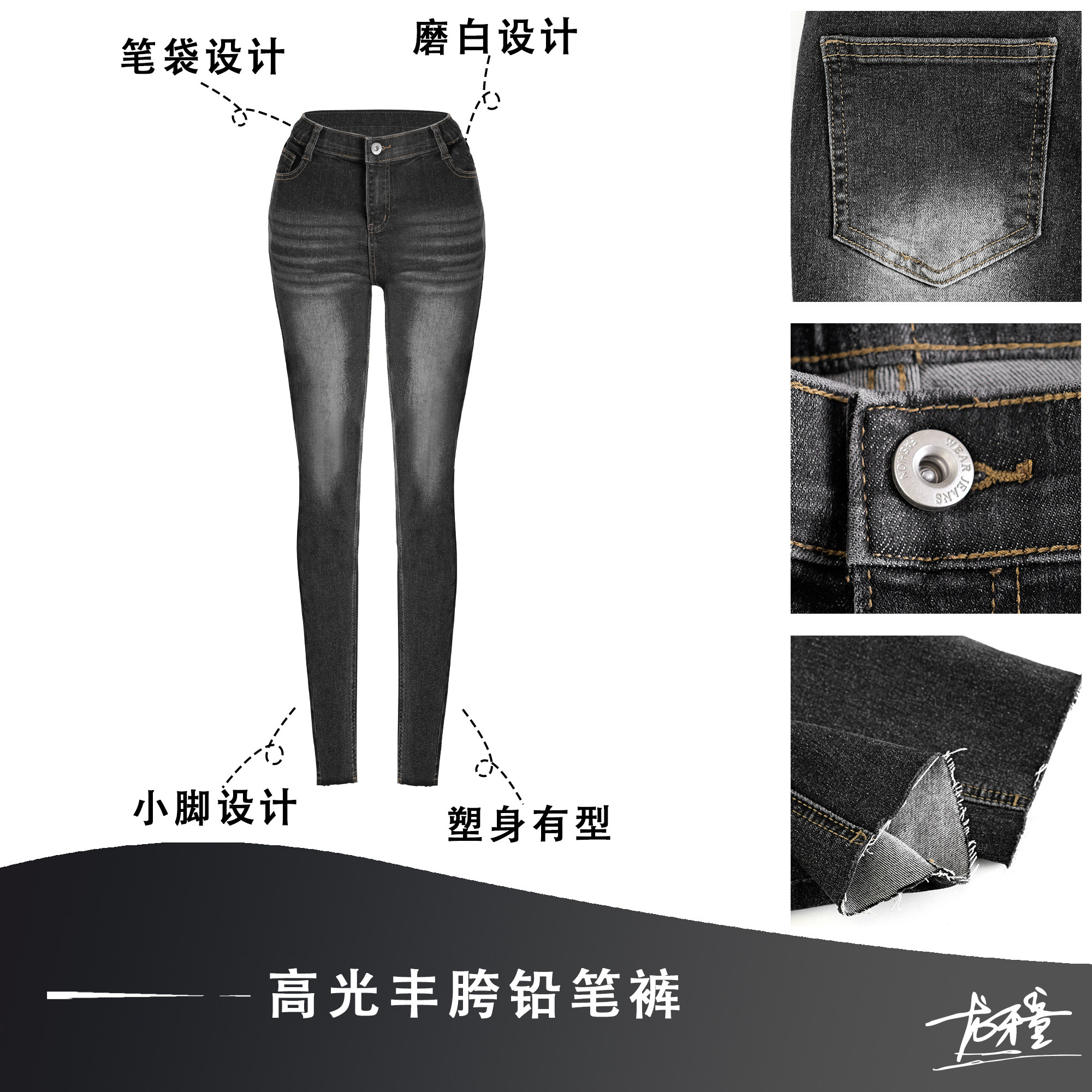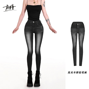 复古水洗磨白牛仔裤 新款 女士高腰修 高光丰胯铅笔裤 龙牙童推荐