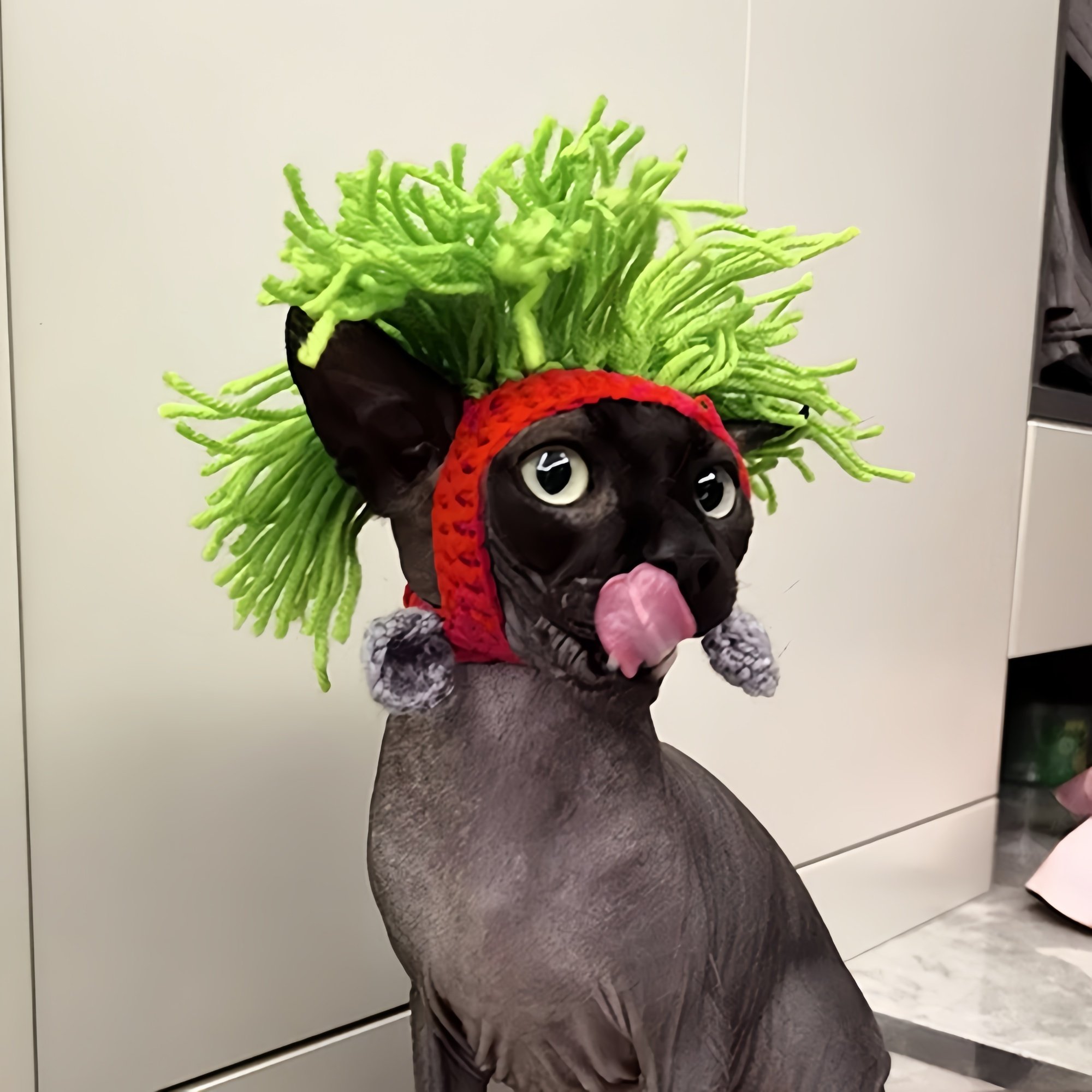 猫咪搞笑帽子无毛猫斯芬克斯头套狗狗德文朋克雷鬼摇滚风装 饰变装