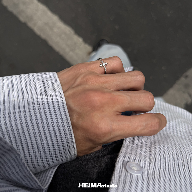 原创鸢尾花系列莫桑钻S925纯银戒指男女小拇指戒子小众 尾戒版