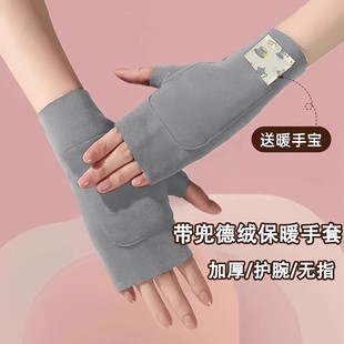 儿童手套秋冬季 保暖可爱小孩卡通库洛米女童半指翻盖宝宝五指写字