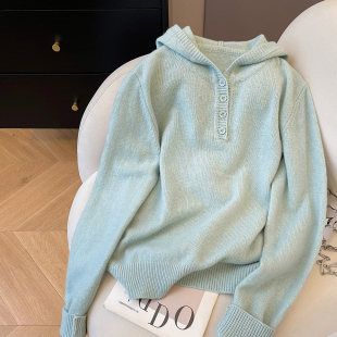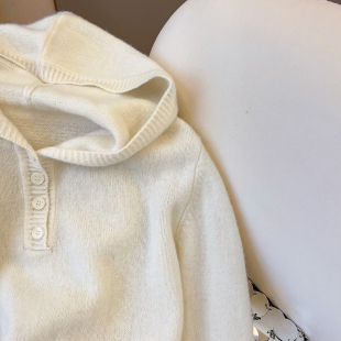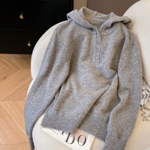 宽松纯羊毛针织衫 小C家 春季 2026新款 上衣 半排扣连帽套头毛衣女款