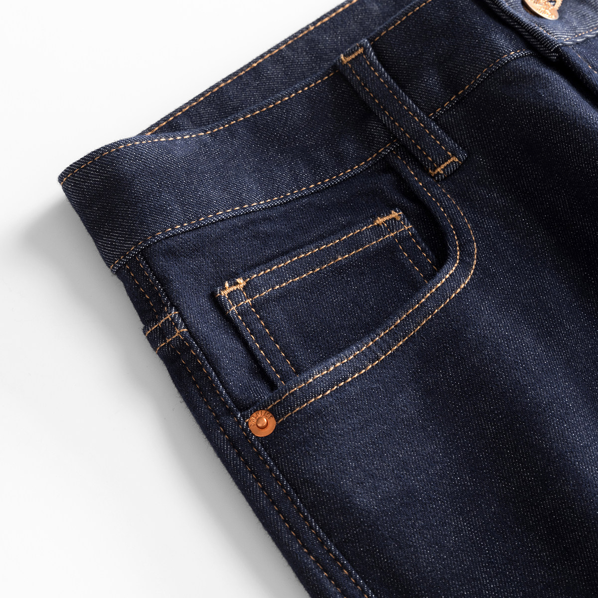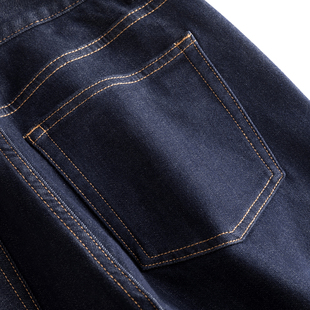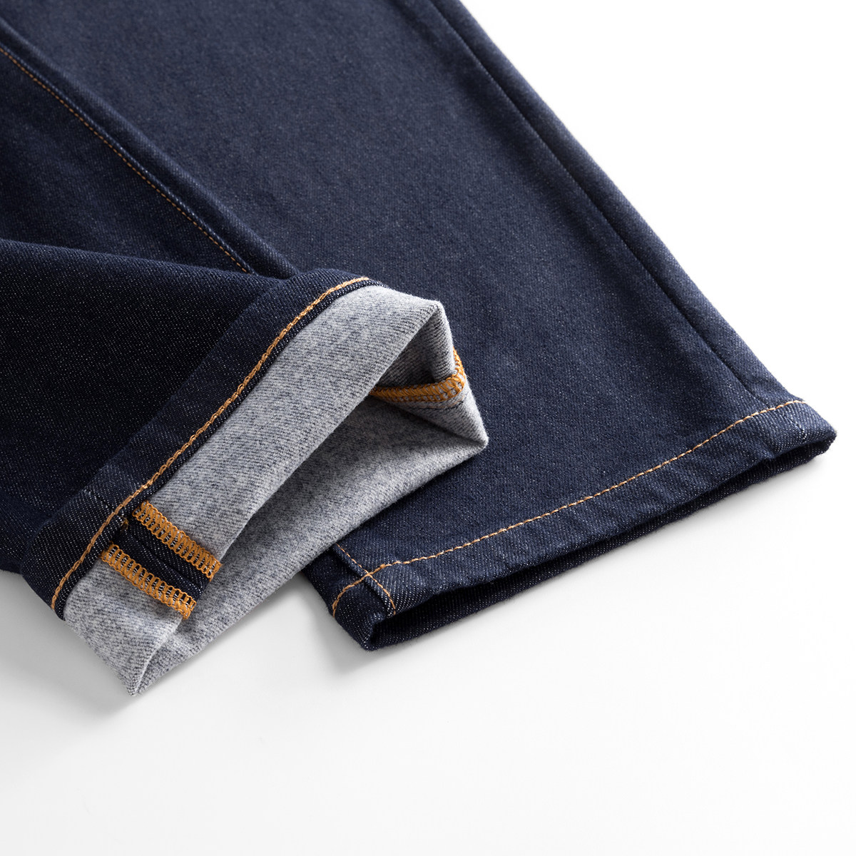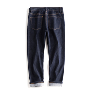 不褪色微宽松小直筒高端百搭 深蓝色9分裤 秋冬加绒羊毛牛仔裤 男士