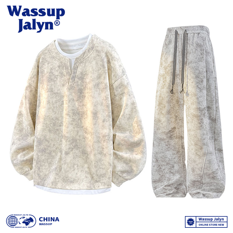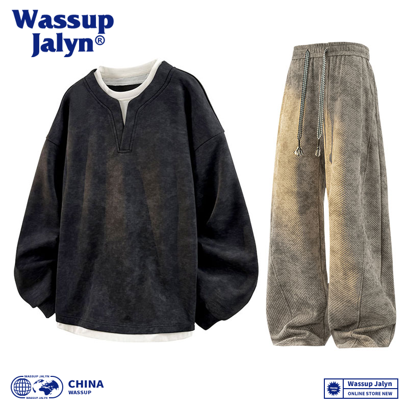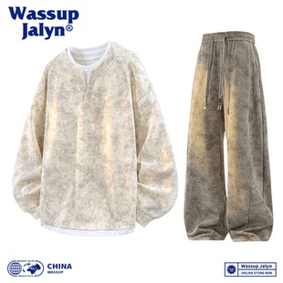 卫衣脏脏长裤 男秋冬宽松大码 情侣两件套 JALYN休闲运动套装 WASSUP