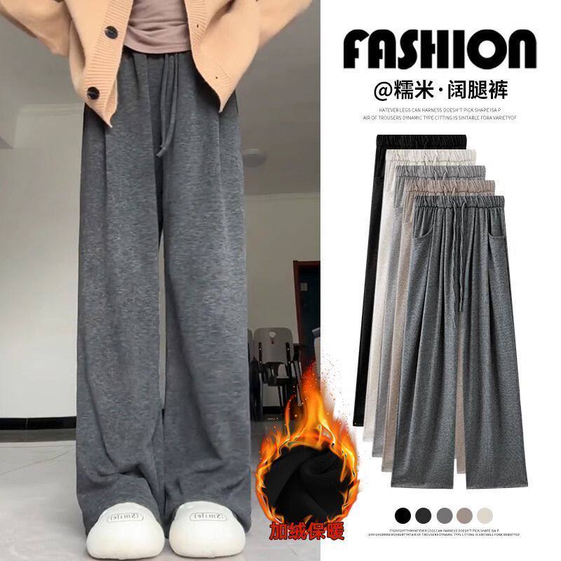 直筒宽松休闲裤 高腰软糯垂感阔腿裤 女2025新款 春秋冬深灰色糯米裤