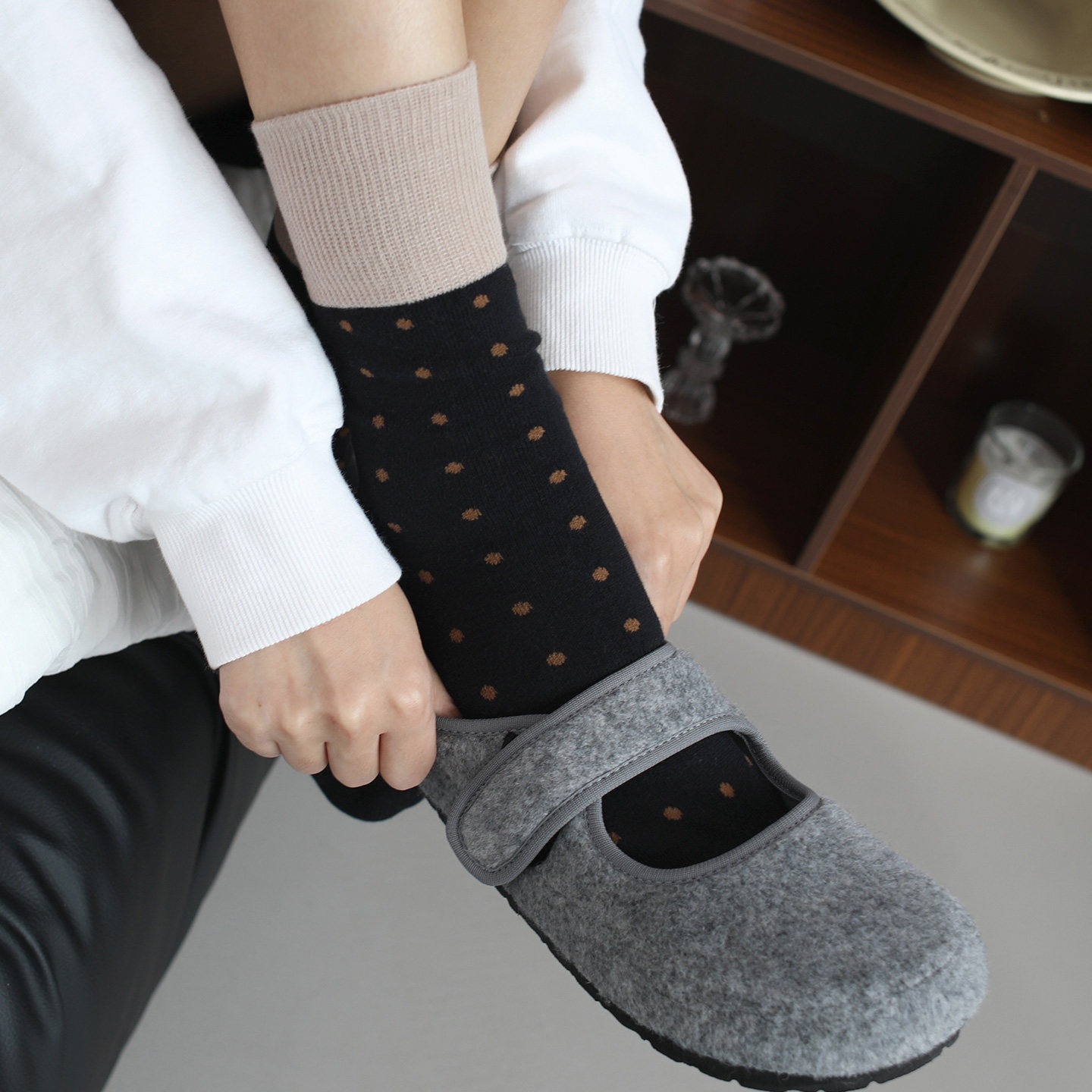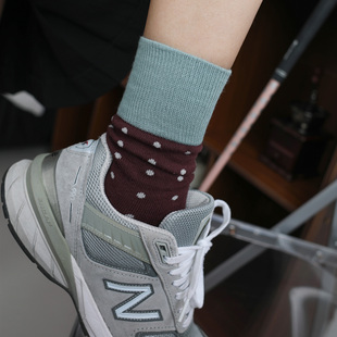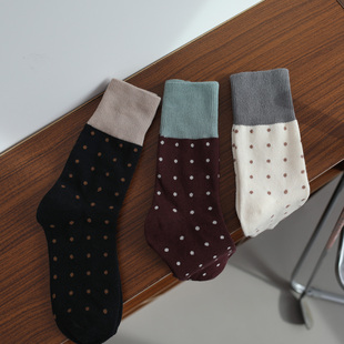 中筒袜韩版 波点袜子女春秋款 ins潮棉长袜复古长筒袜 起步韩袜