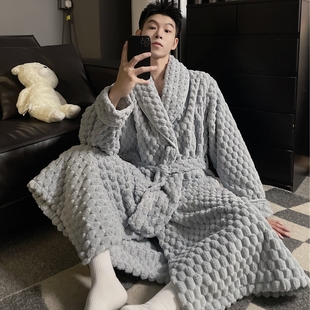 加厚保暖超长睡衣男大码 系带情侣睡袍豹纹女胖m珊瑚绒 300斤宽松版