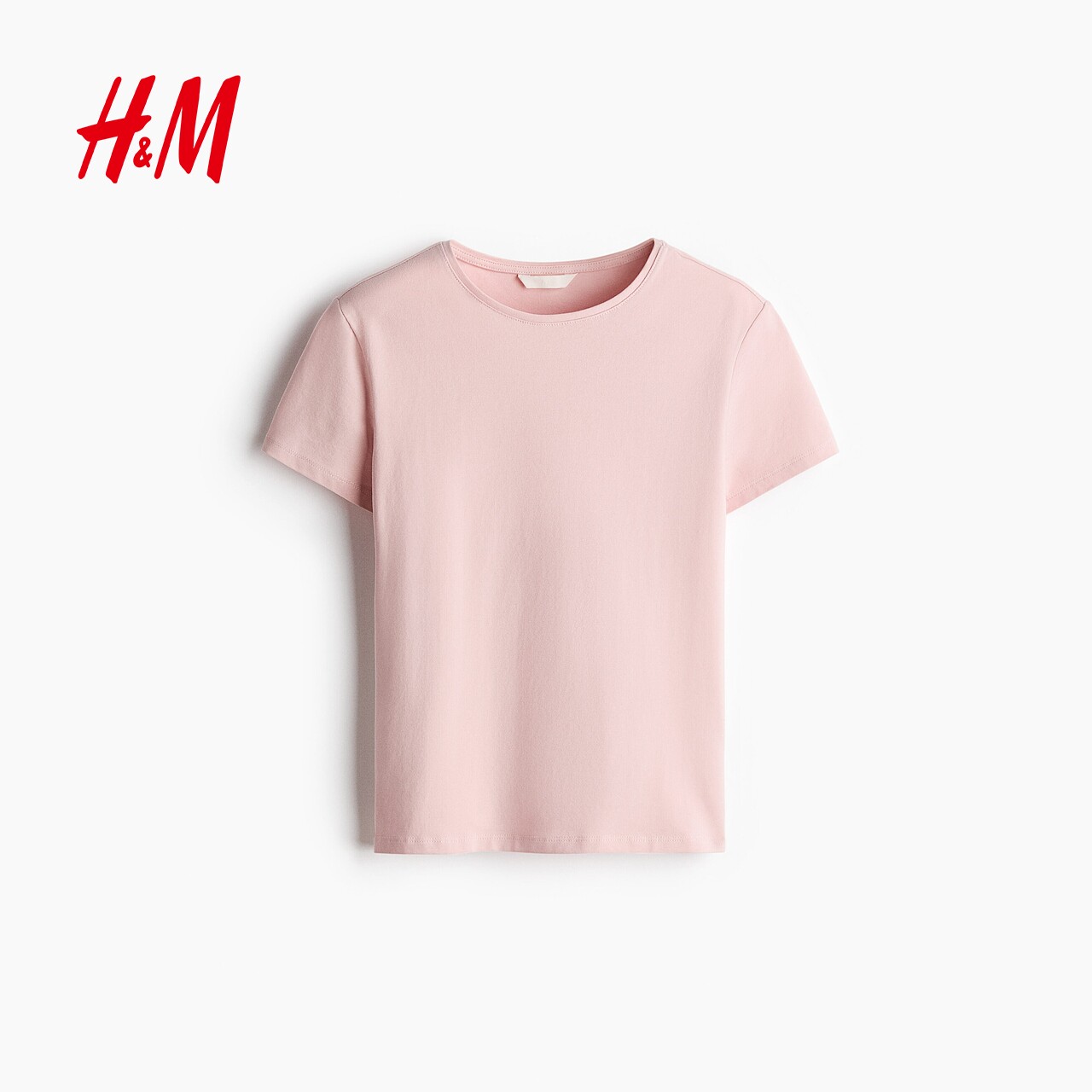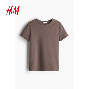 圆领休闲短袖 HM女装 浅春系穿搭修身 新款 上衣1260200 T恤2026春季