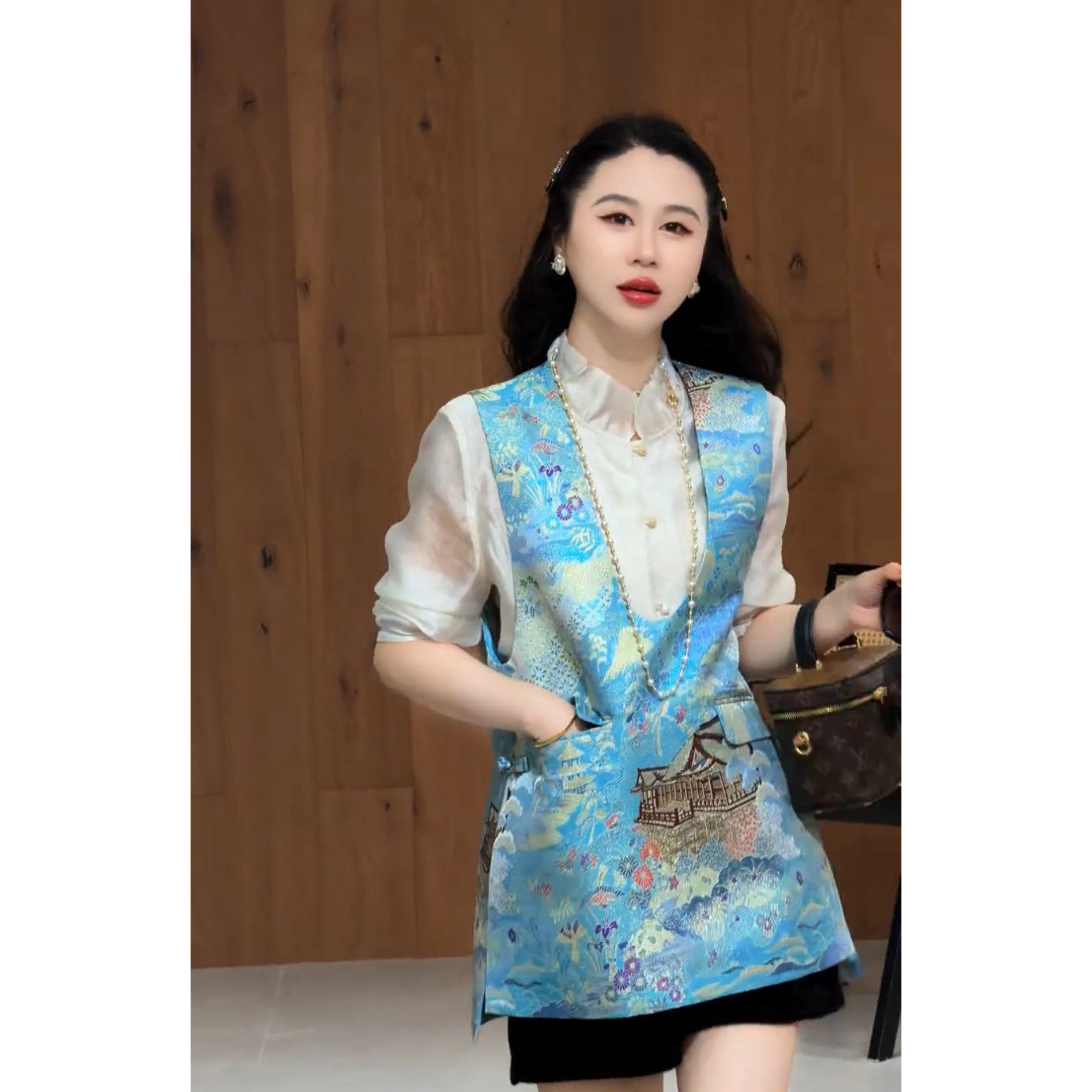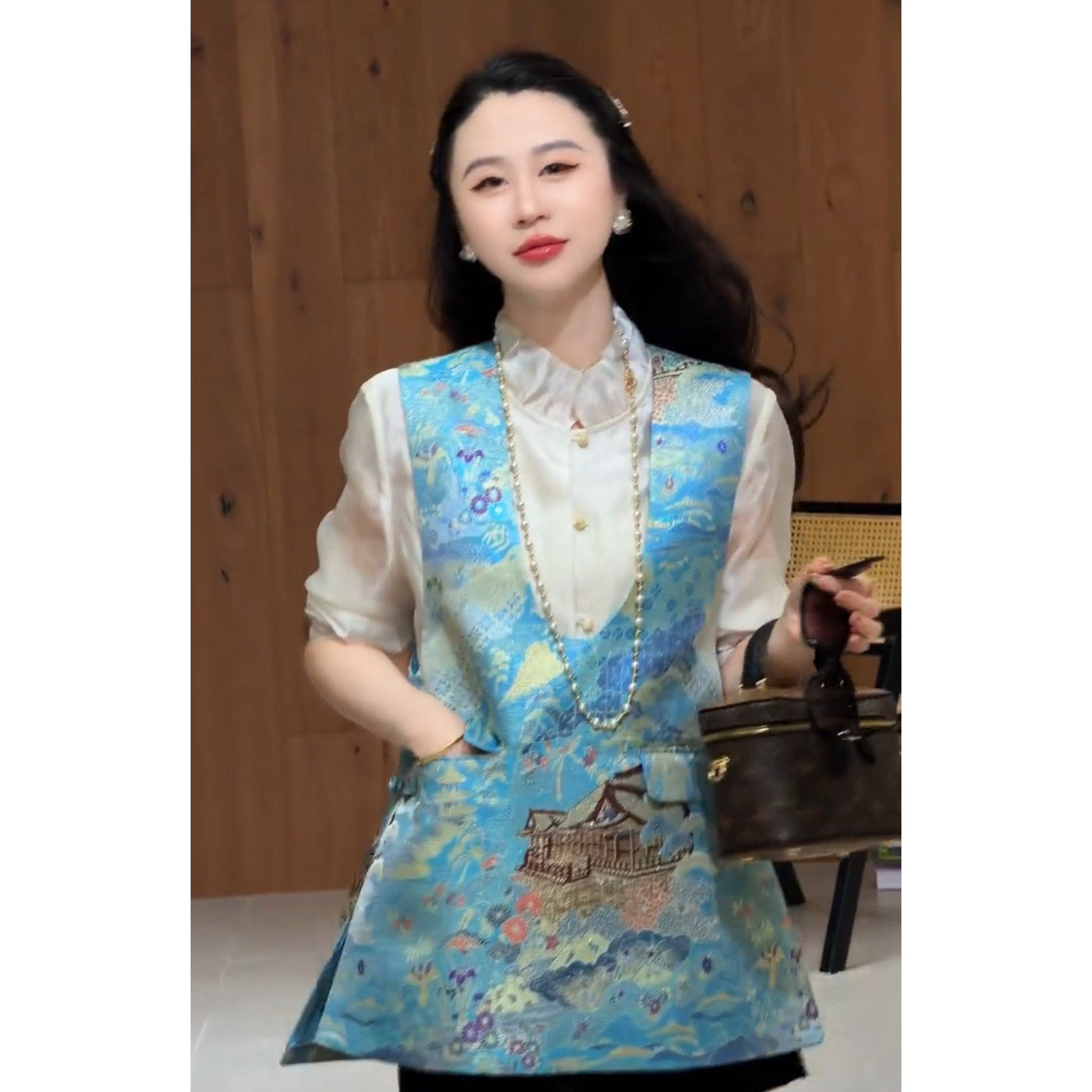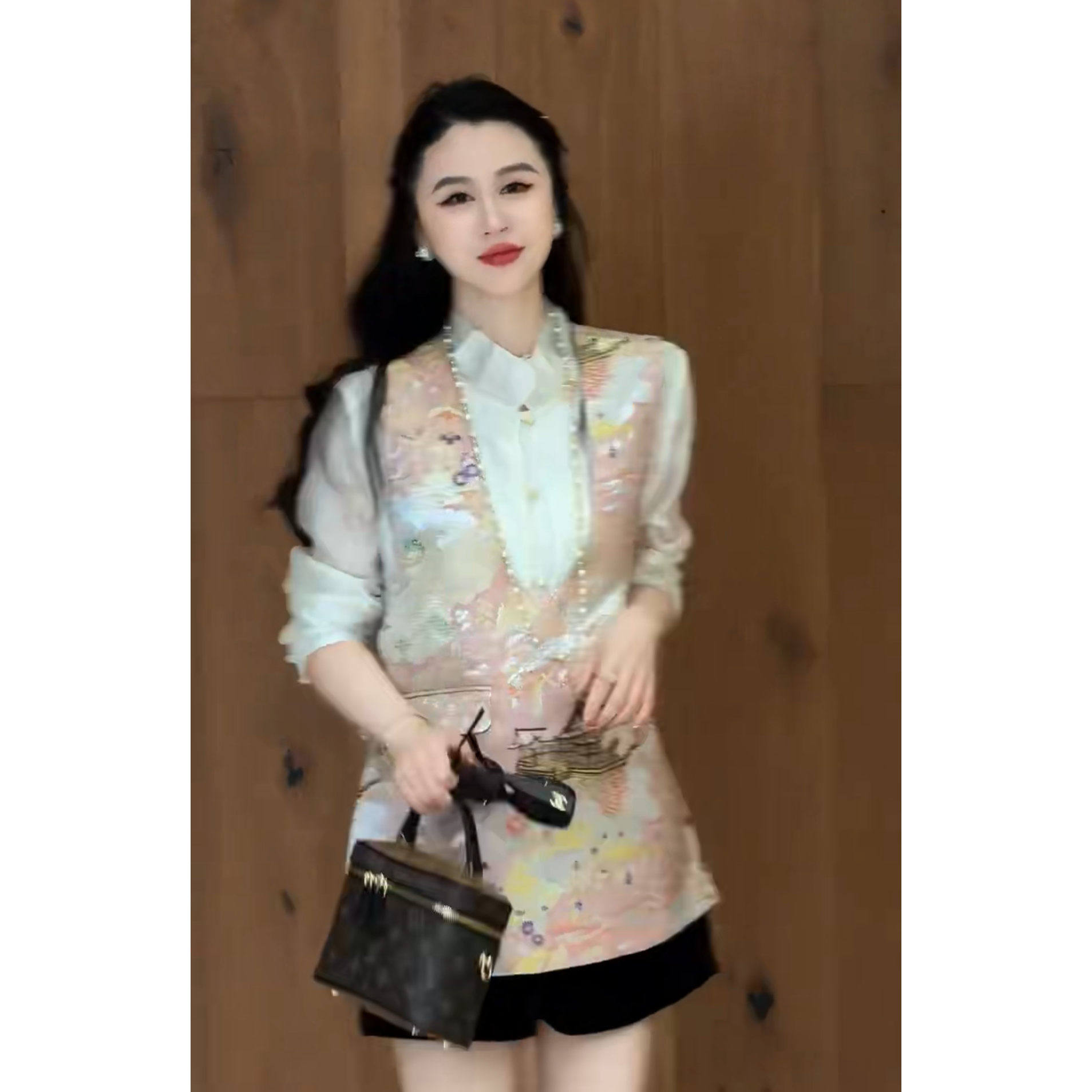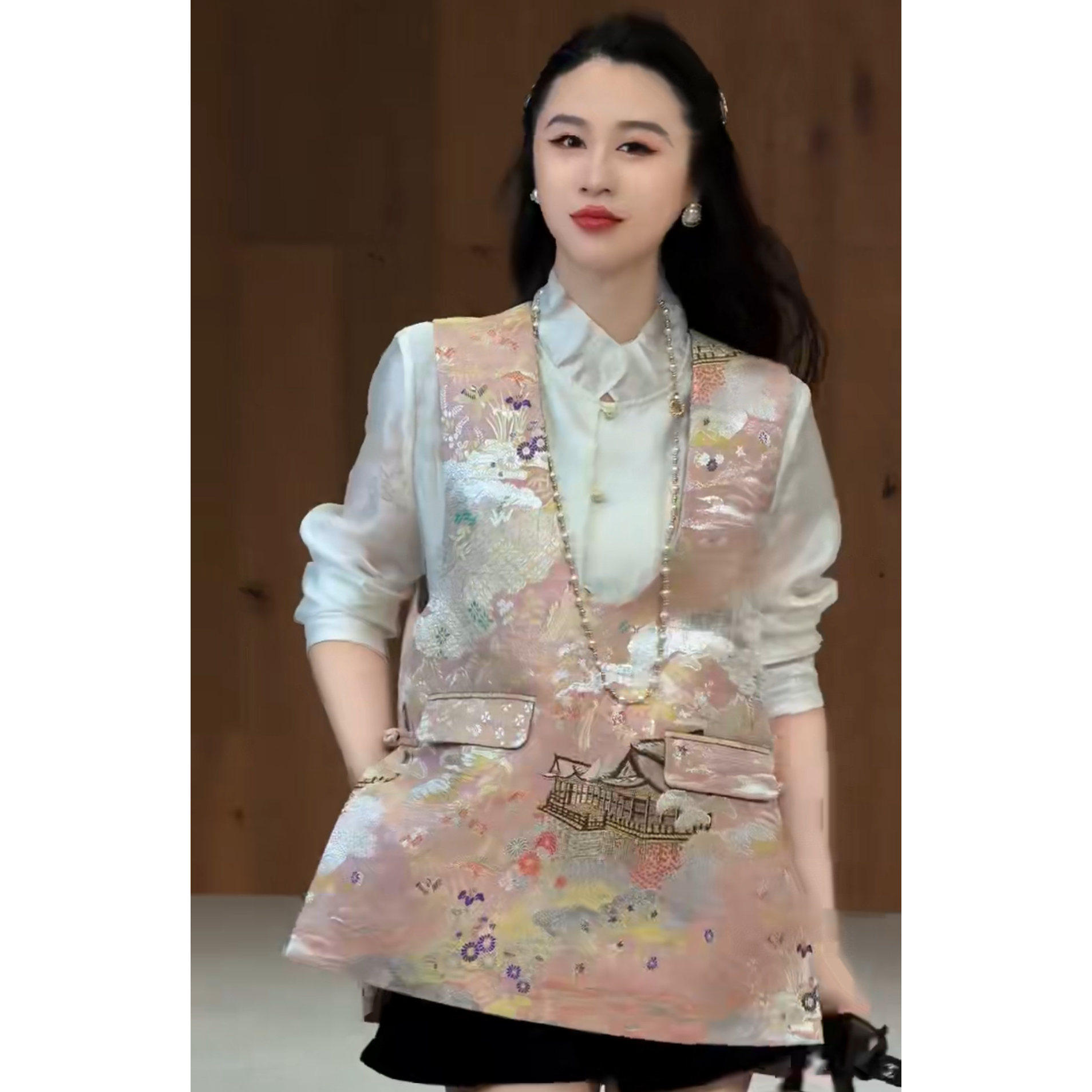 国潮风轻奢气质漂亮提花盘扣马甲衬衫 新中式 两件套女 新款 2026春季