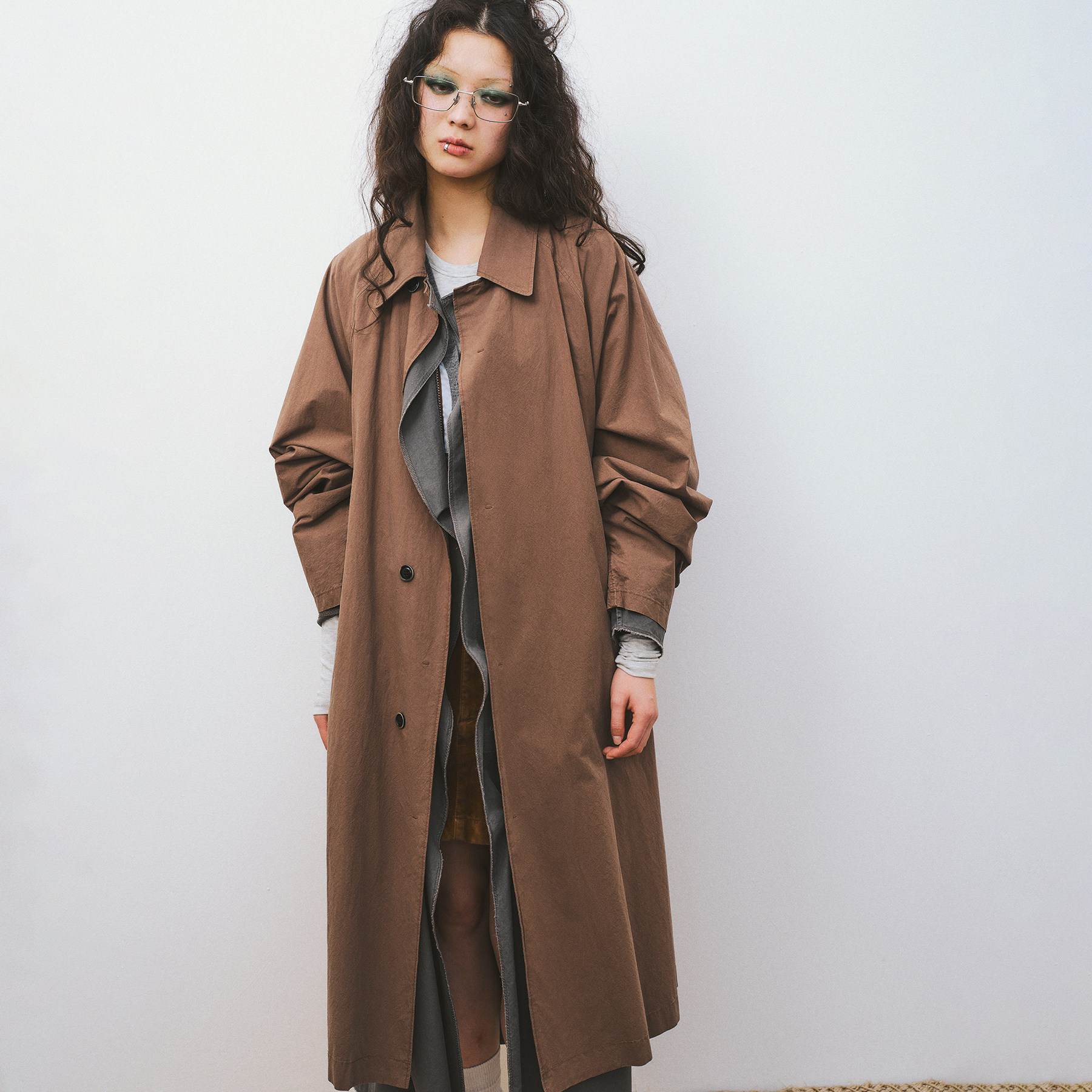 水洗肌理纸感棉中长款 不规则色彩叠片 风衣外套 构建轻盈 VERMO