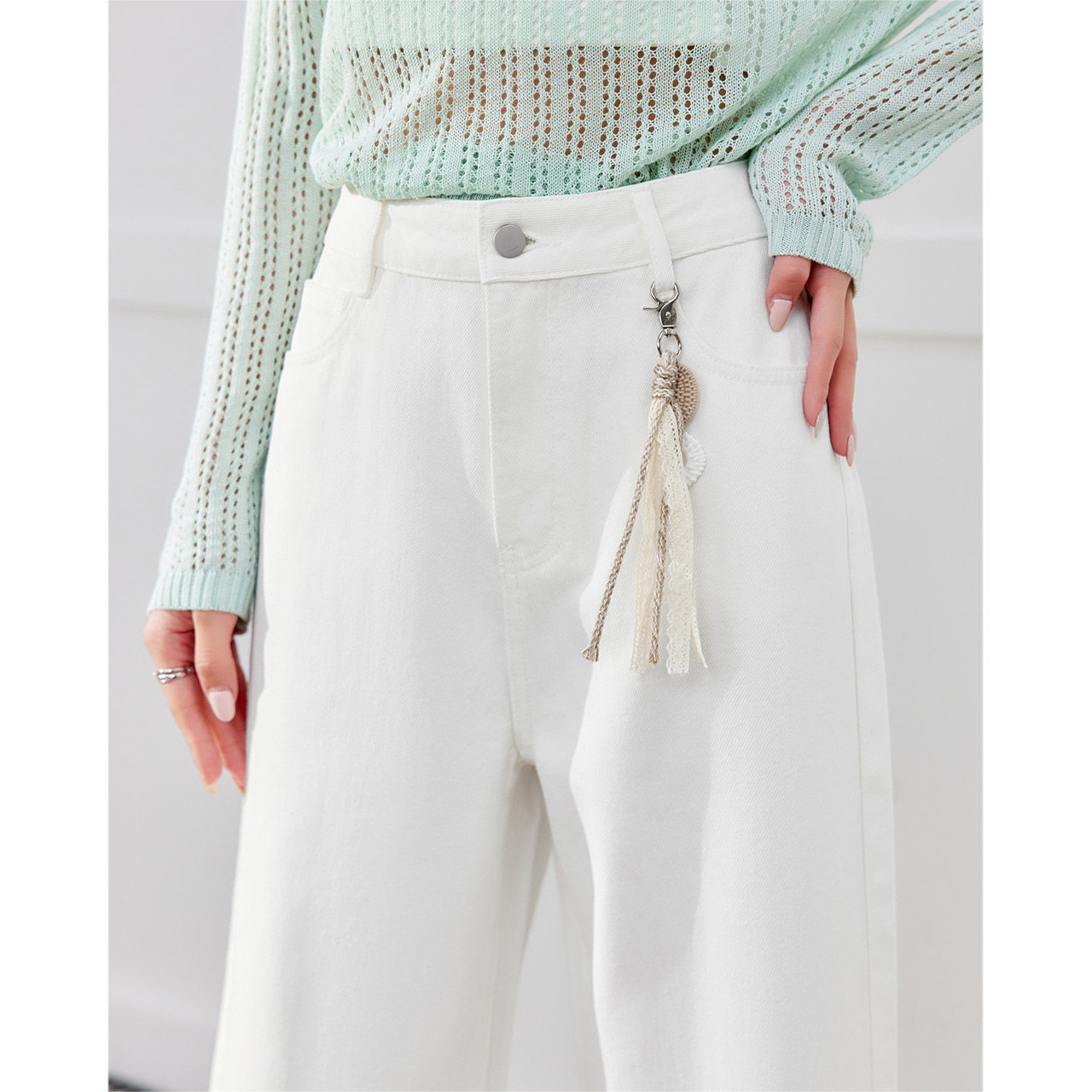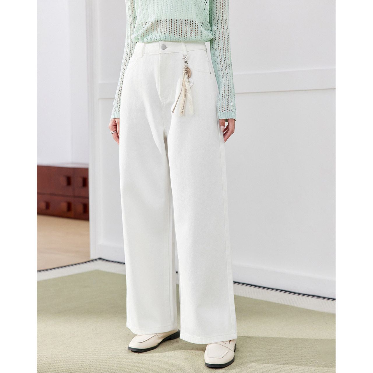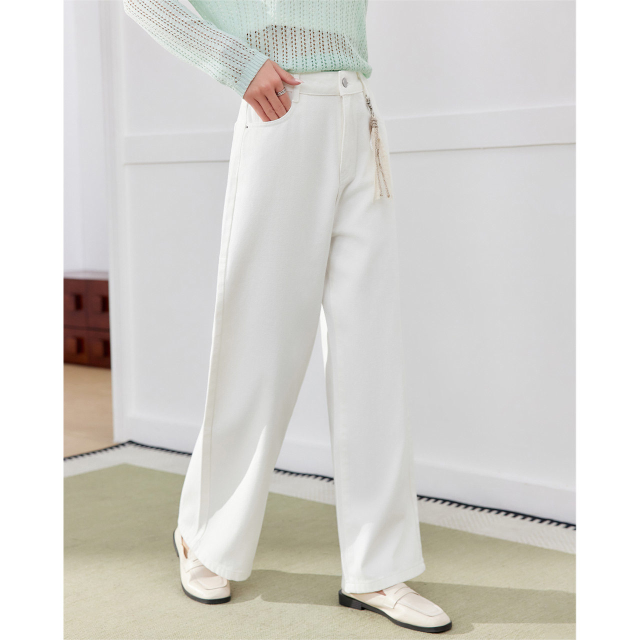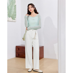 新款 子2026春季 韩版 时尚 IEF 文艺休闲通勤百搭牛仔阔腿裤 爱依服裤