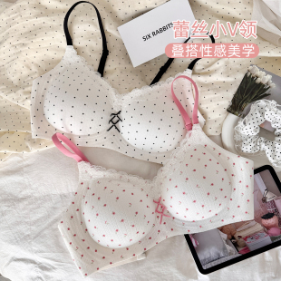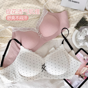 六只兔子无痕内衣女小胸聚拢胸罩收副乳防外扩蕾丝领甜美风文胸