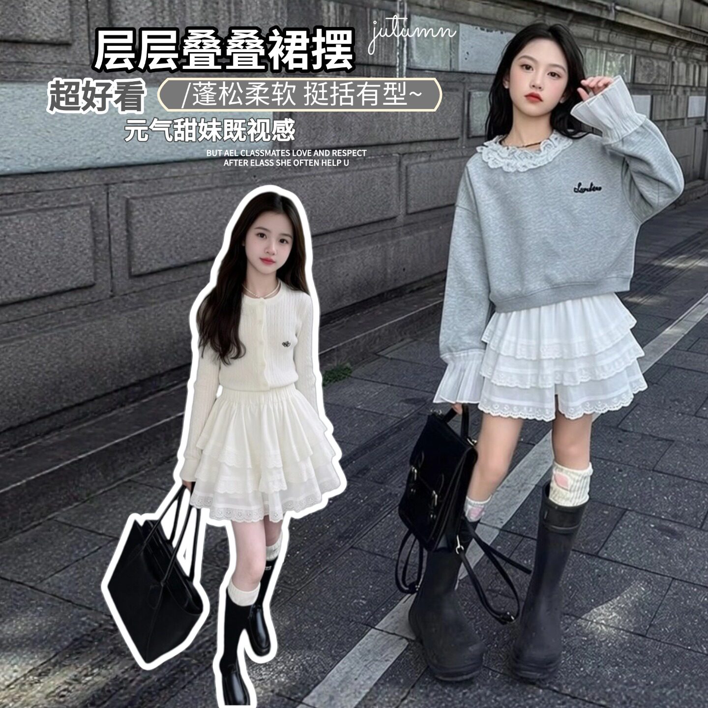女童半身裙春秋2026新款 蕾丝女孩白色短裙超好看儿童公主蛋糕裙裤