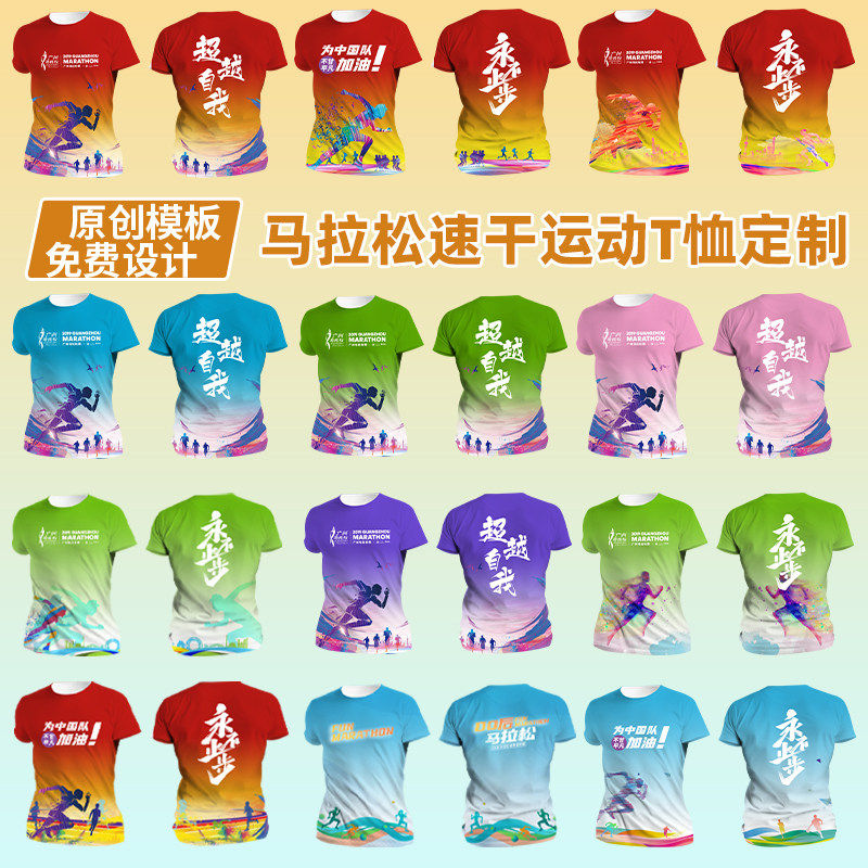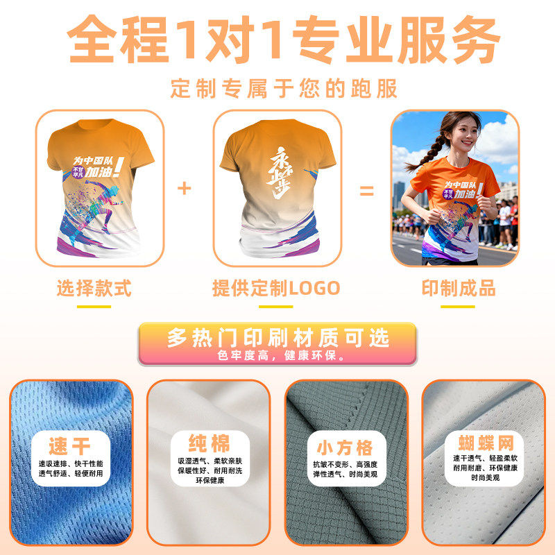 速干T恤定制马拉松跑团短袖 跑步比赛团体服运动印制速干衣运动会