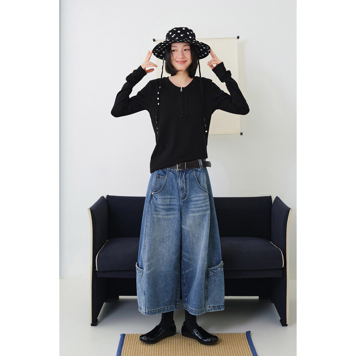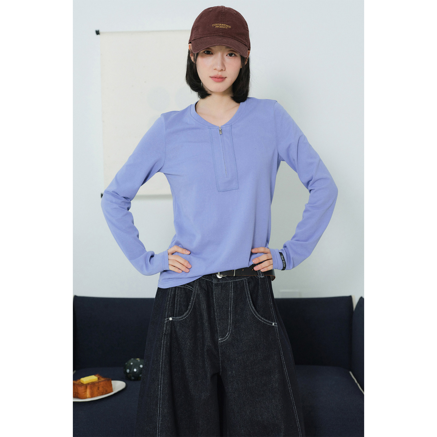 鹿与飞鸟「百搭主义」四季 半拉链亨利领正肩显瘦基础T恤7356 款