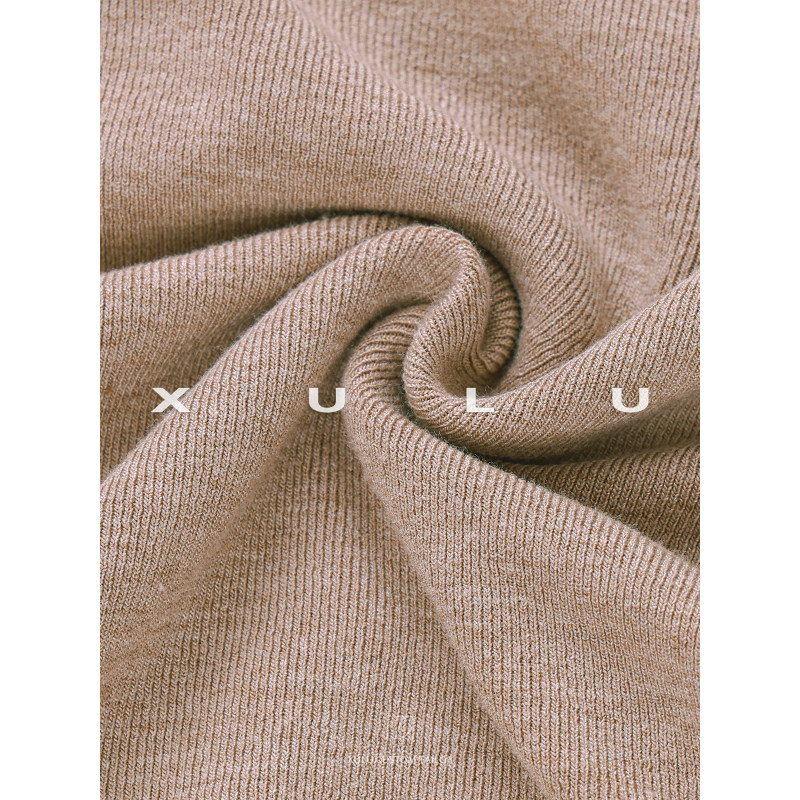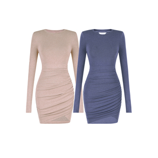 圆领连衣裙 褶皱高腰长袖 XULU原创秋季 纯色人棉性感包臀裙休闲修身