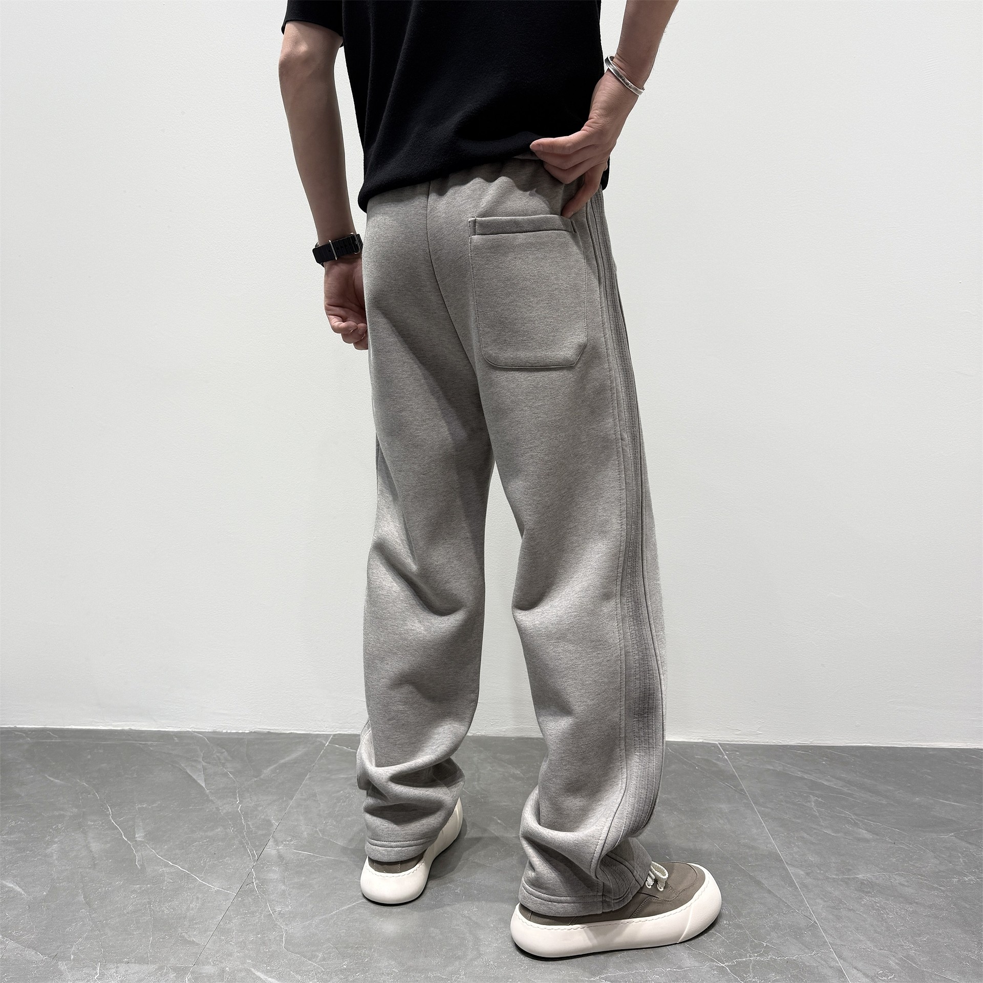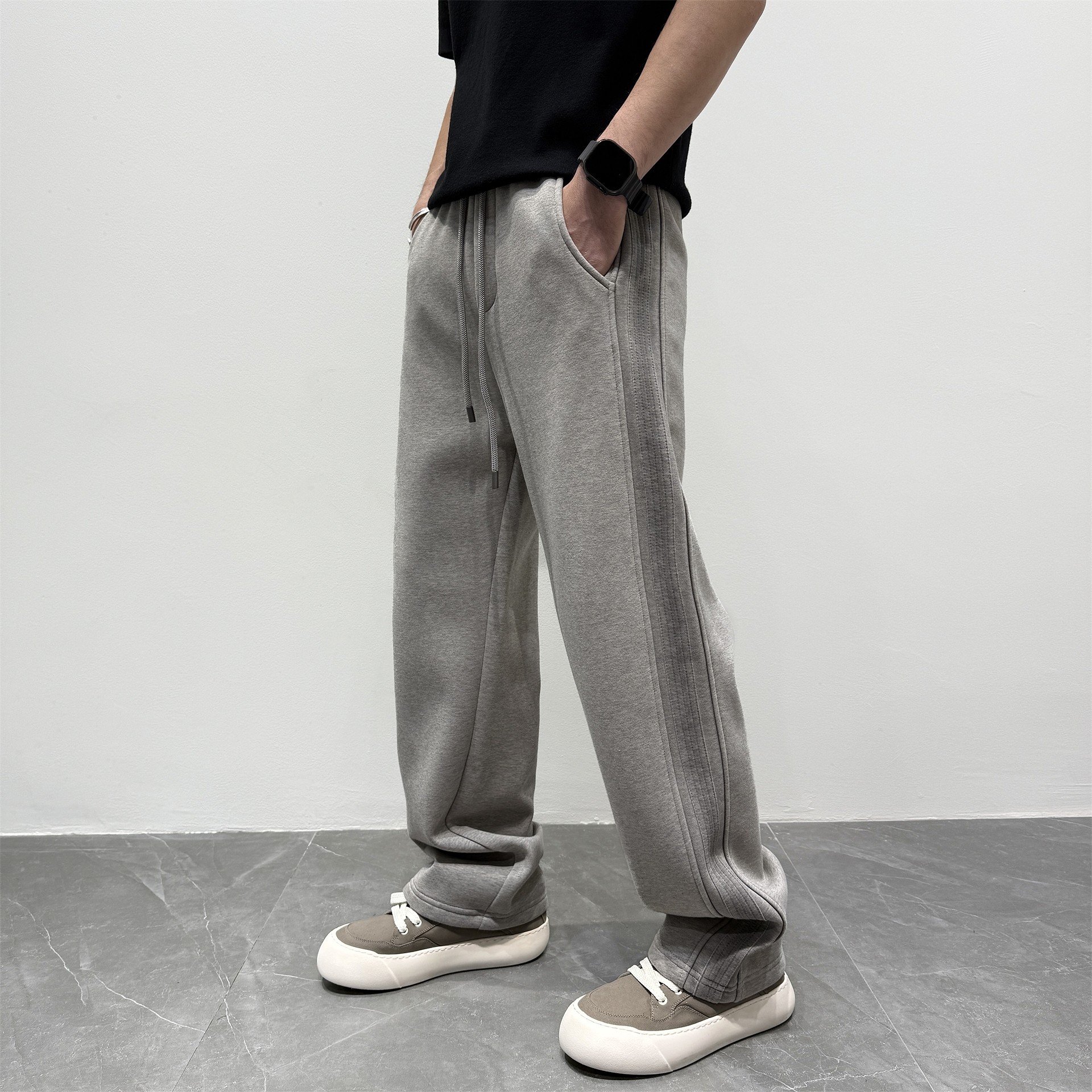 加绒加厚宽松抽绳松弛感运动卫裤 子男冬季 复古水洗直筒休闲裤 美式