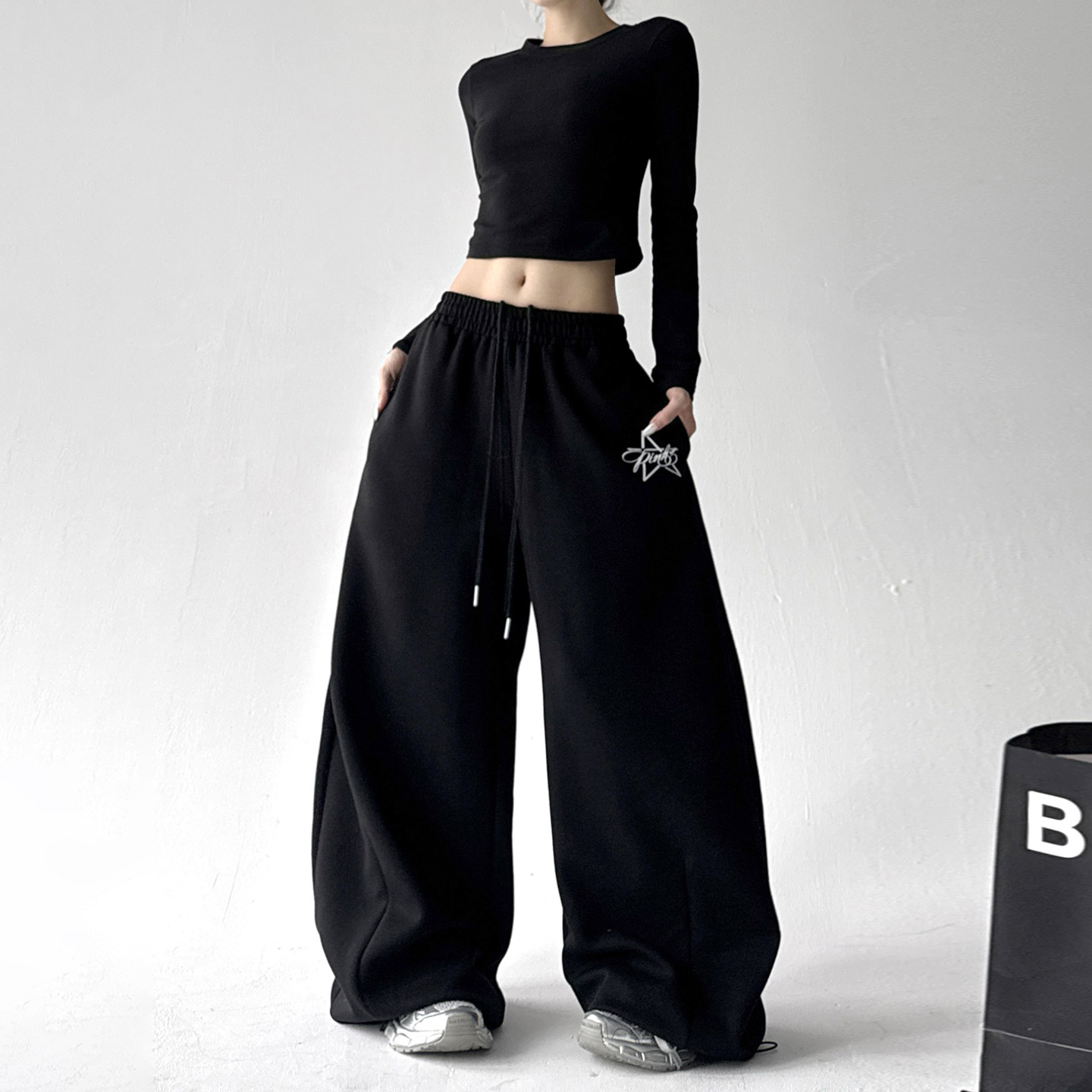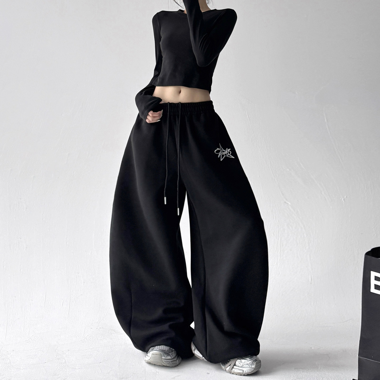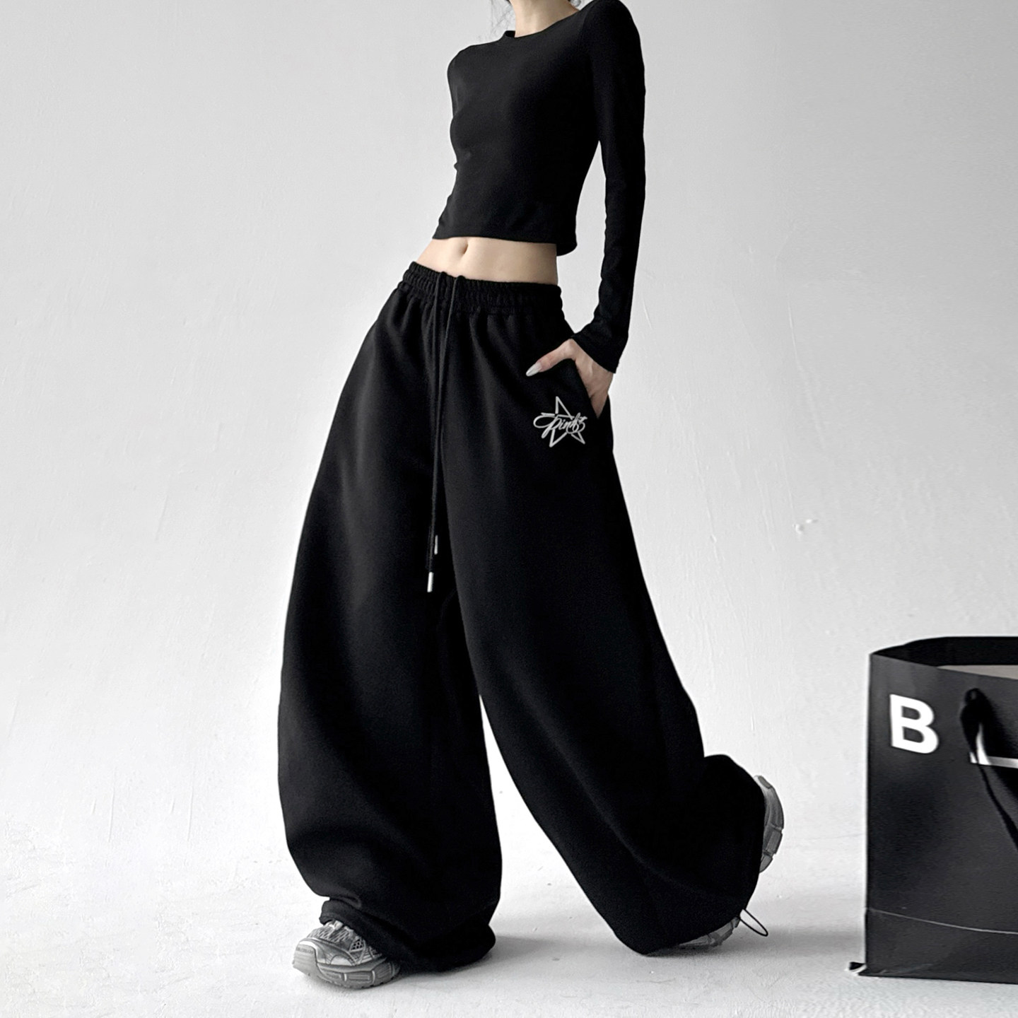 宽松显瘦百搭阔腿卫裤 2025秋冬季 女高级感印花休闲裤 运动裤 子 新款