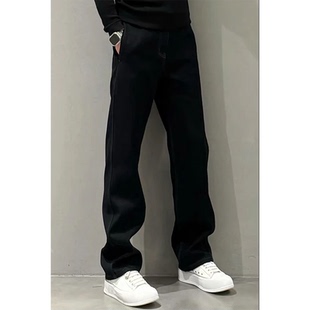 轻奢休闲裤 秋冬新款 潮流时尚 秋季 欧货百搭纯色加绒牛仔裤 筒裤 男士