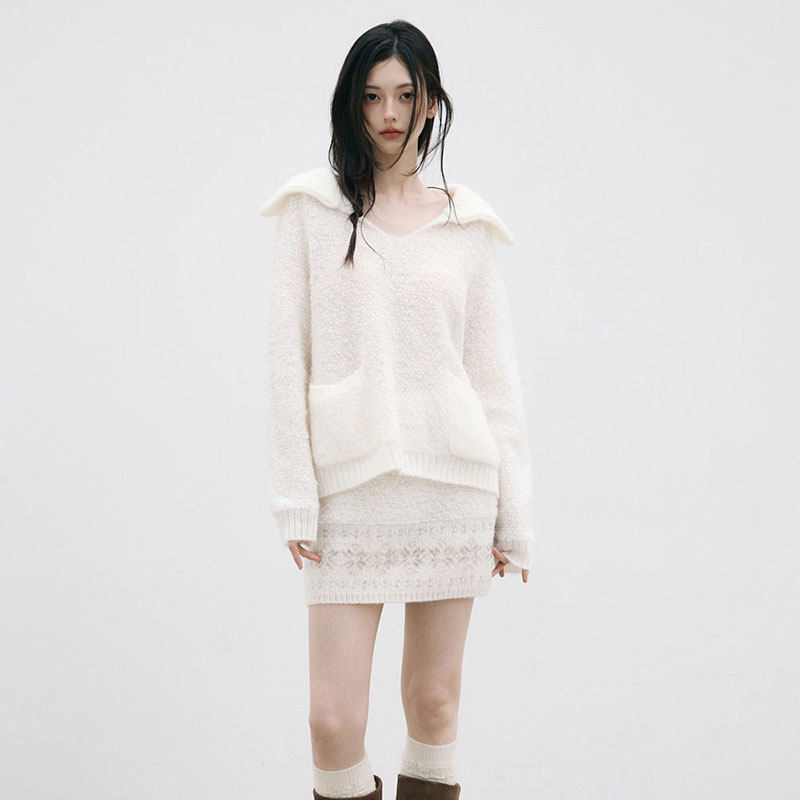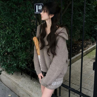 NERESUM费尔岛毛绒小羊毛衣女美式 复古慵懒风秋冬宽松保暖针织衫