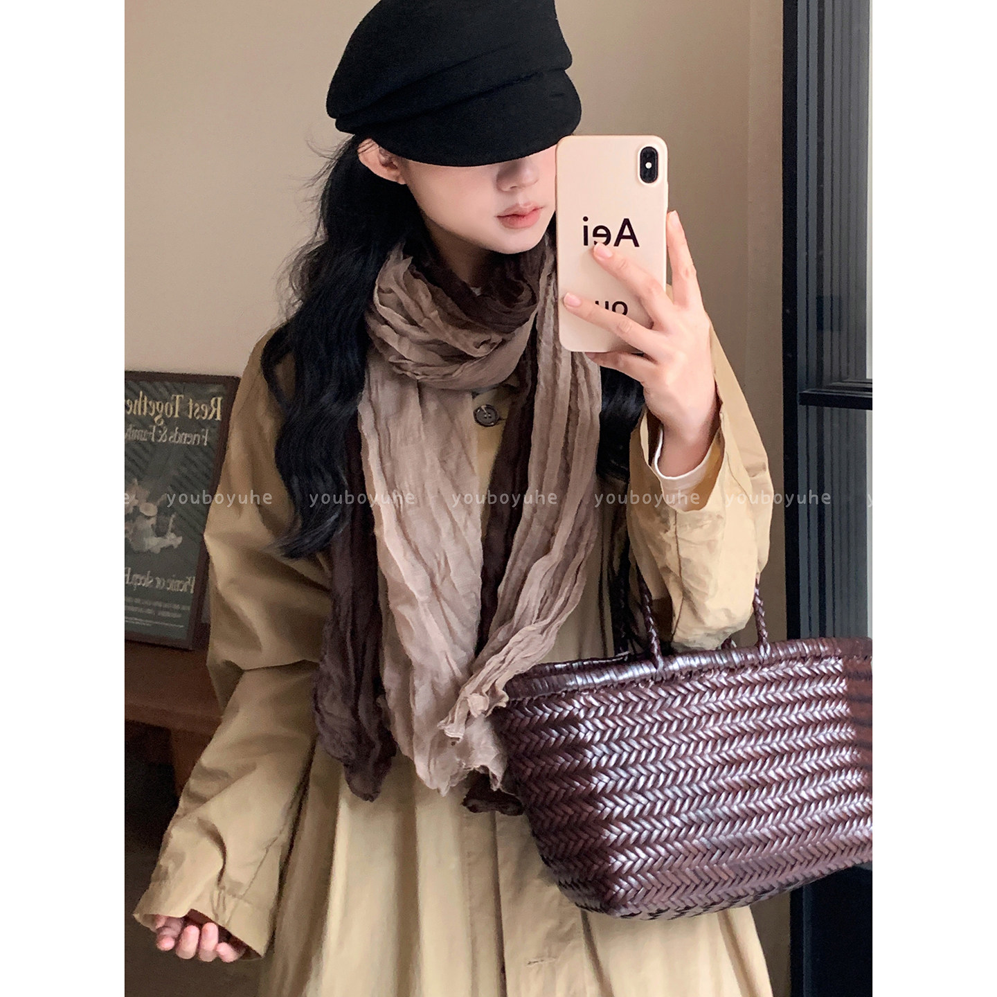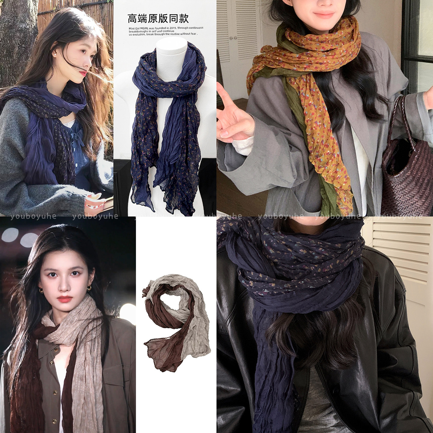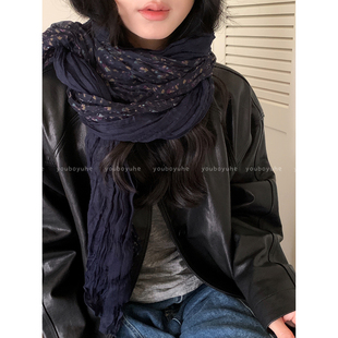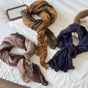 文艺复古撞色碎花长条丝巾女时尚 洋气高档系脖颈饰高级感百搭围巾