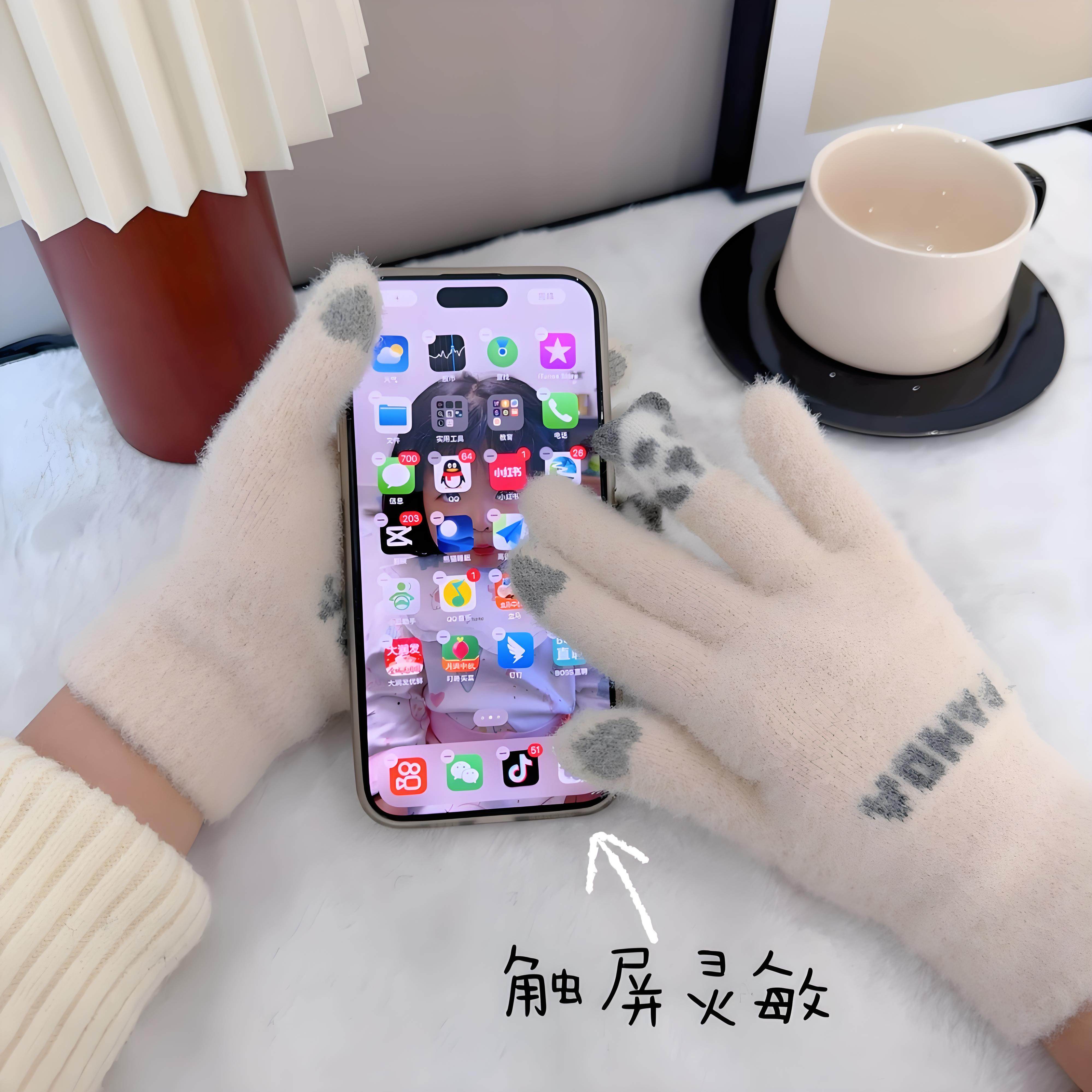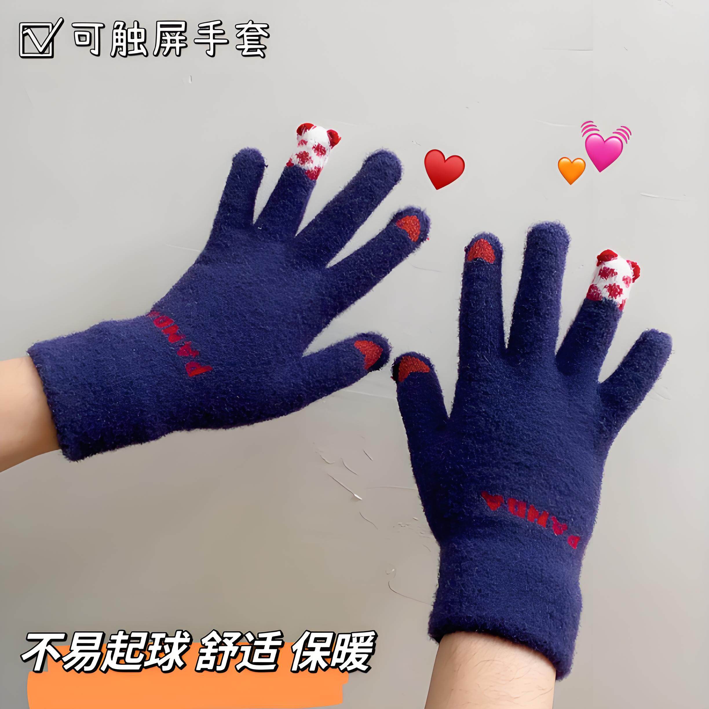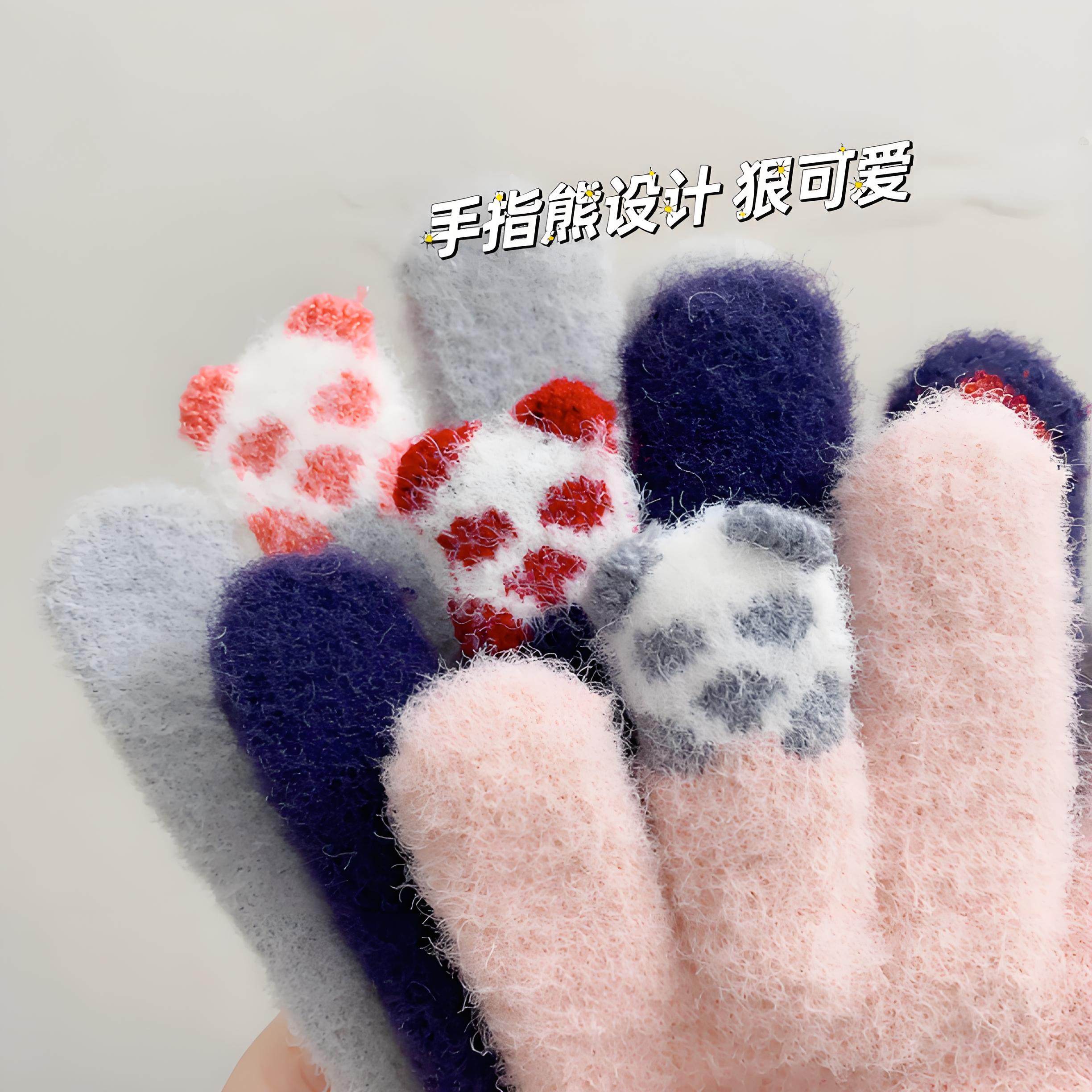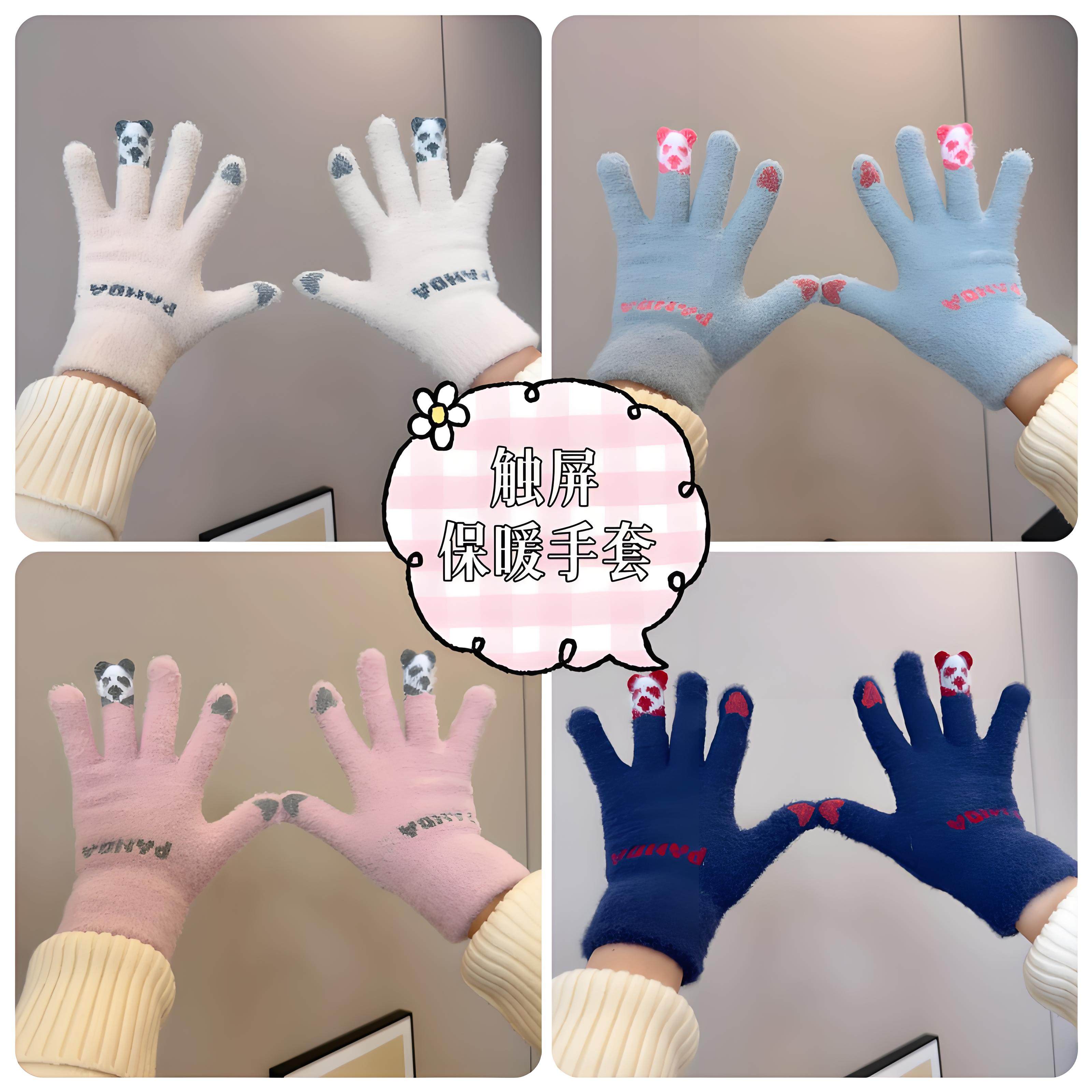 可爱小熊手套秋冬季 防风防寒可触屏手套加绒加厚HWJ 保暖学生韩版