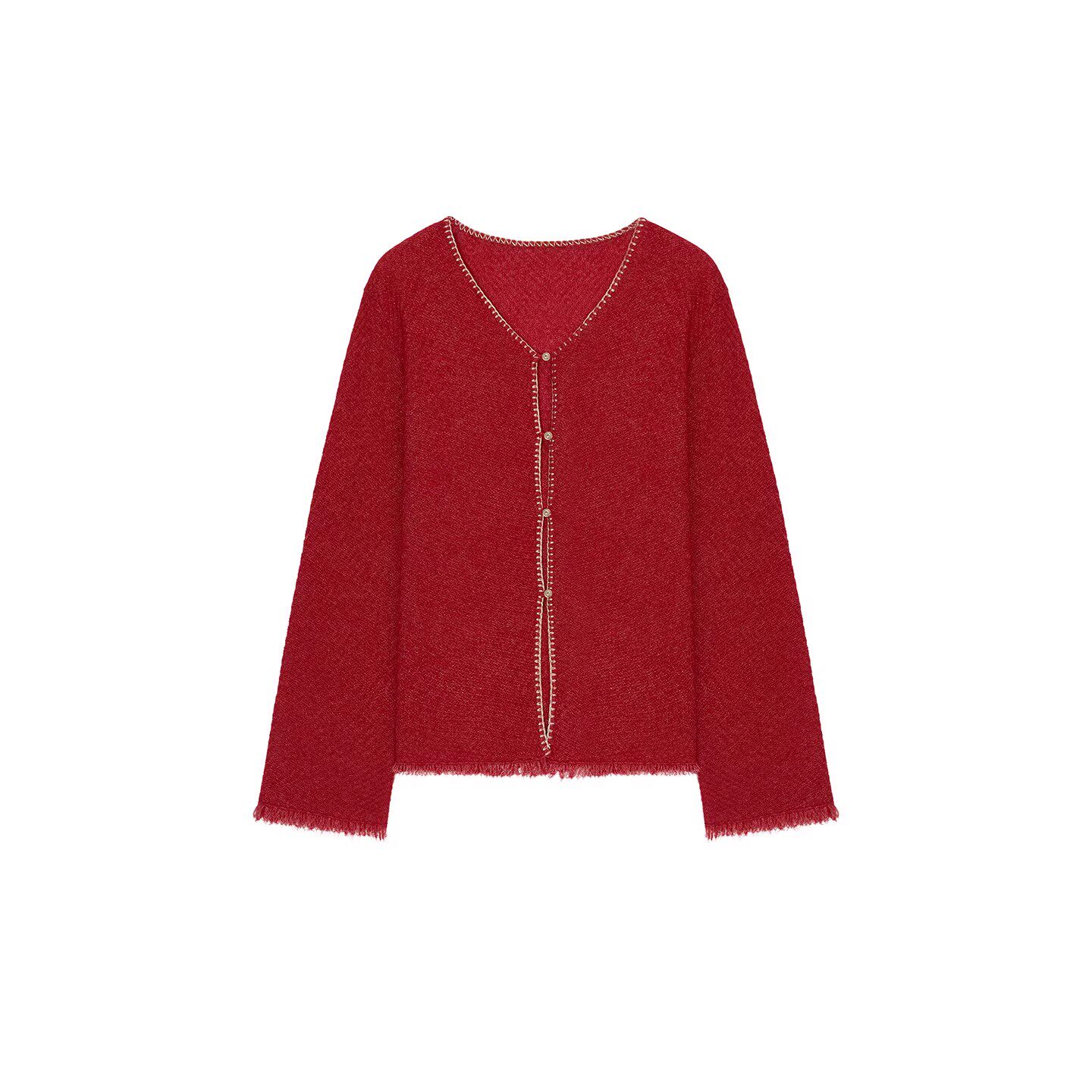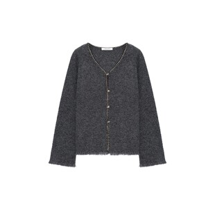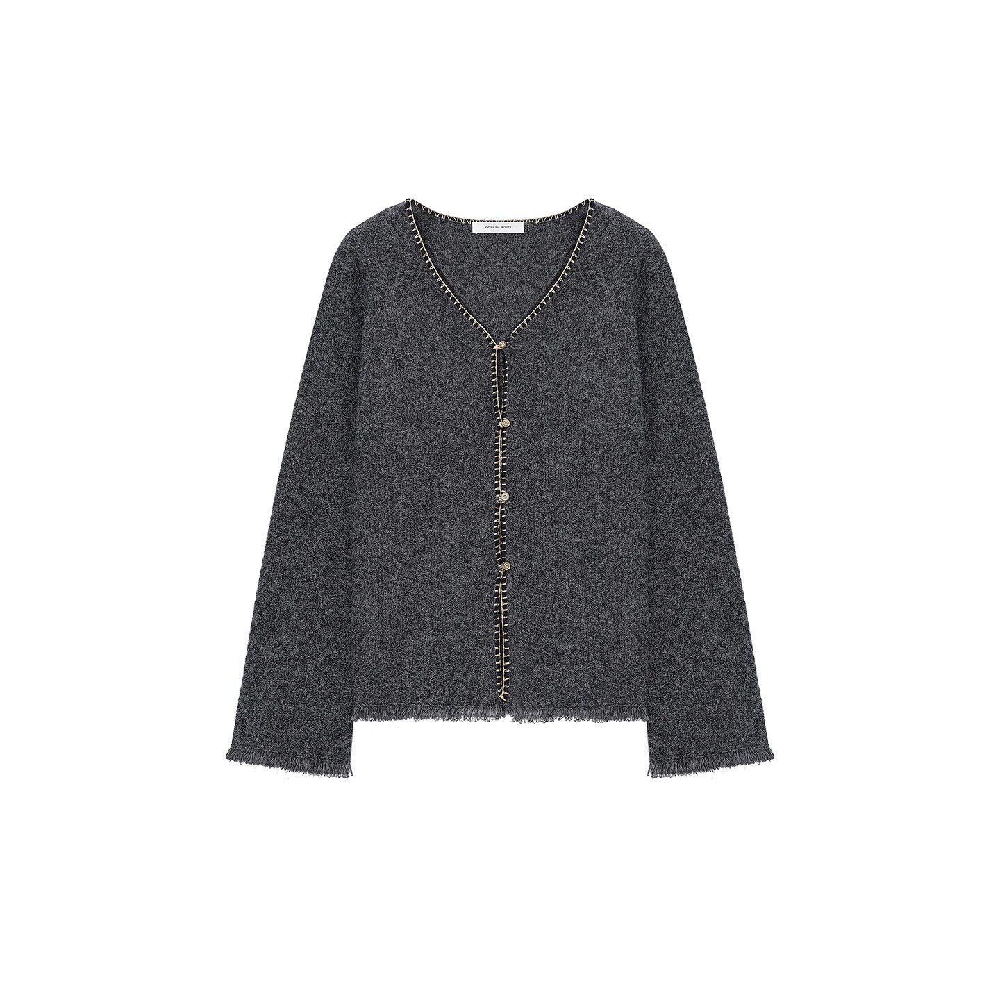 银泰百货精品 concise 25秋冬女士毛边V领开衫 简白 301257 white