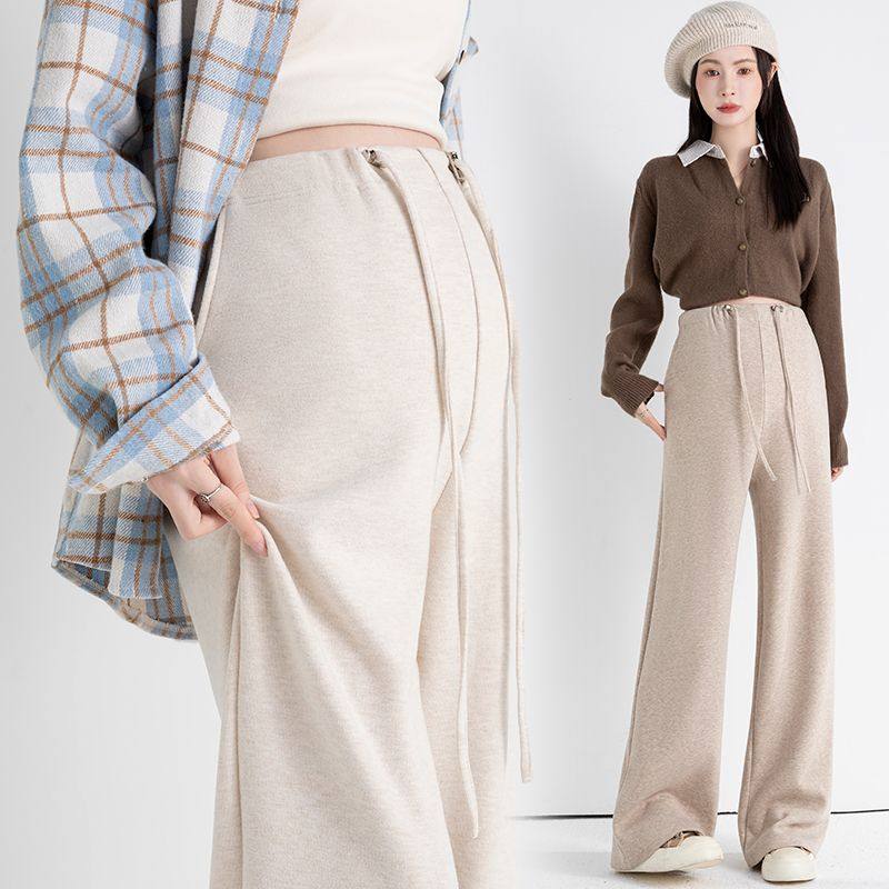 孕期高腰外穿含羊毛面料保暖阔腿裤 加绒加厚阔腿裤 秋冬新款 孕妇裤