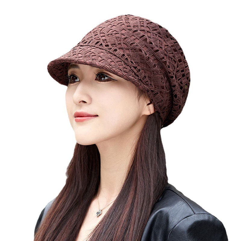 时尚 显脸小镂空鸭舌帽女士蕾丝套头月子帽 休闲帽百搭女帽针织夏季