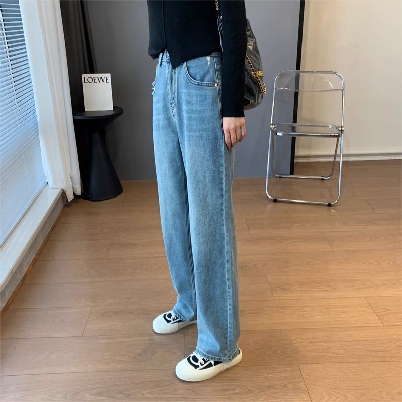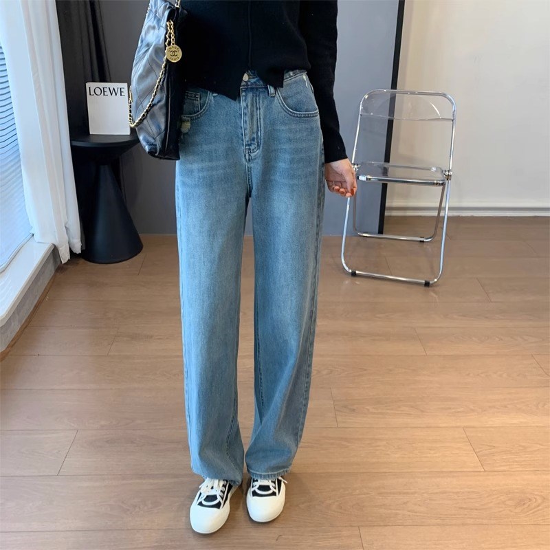 显瘦垂感直筒裤 水泥灰阔腿牛仔裤 女秋冬加绒梨形身材胖mm宽松大码