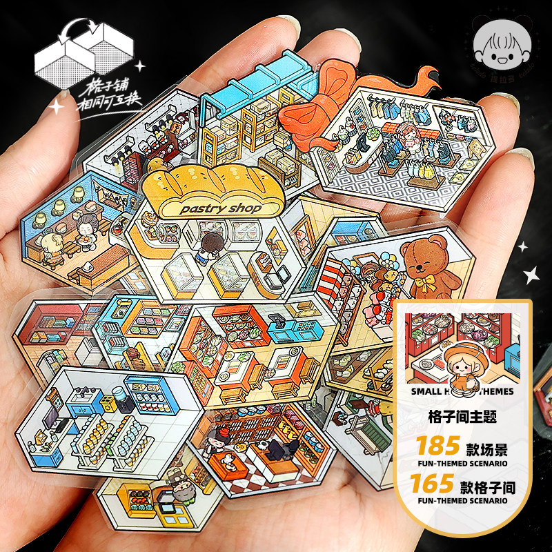 造景收纳贴纸合集立体小屋儿童女孩玩具diy解压手工堆叠微缩贴纸