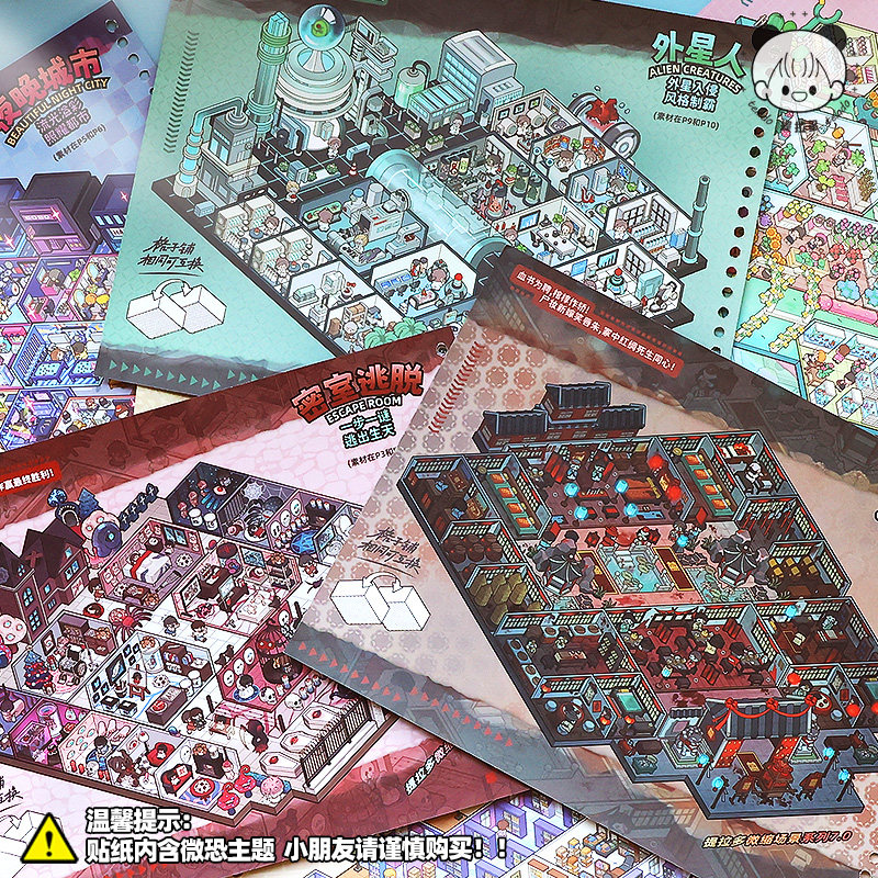 提拉多微缩场景合集本6.0造景贴纸古风微恐场景手账小贴纸套装 饰贴画 立体微缩小屋女孩儿童玩具diy手帐贴纸装