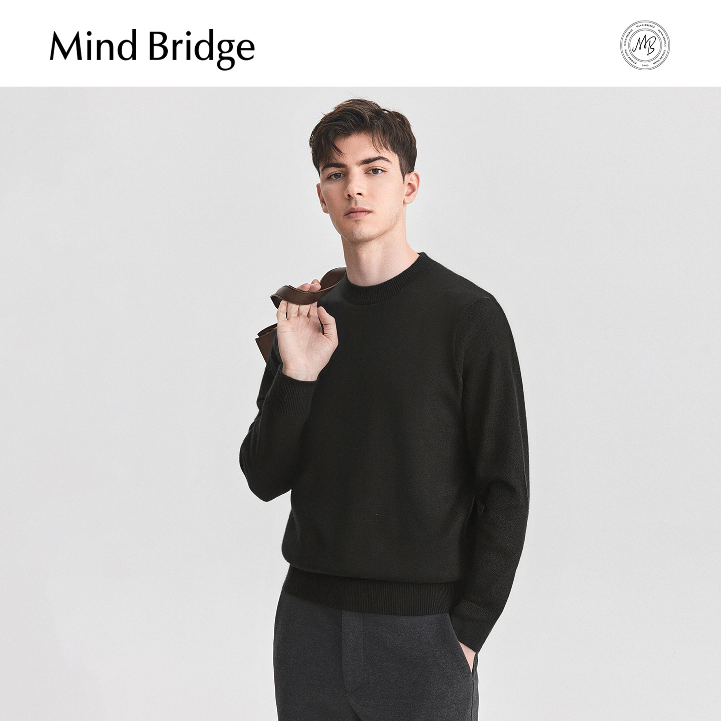男士 Mind 2025年冬休闲百搭羊毛衫 绵羊毛 纯色圆领毛衣 Bridge