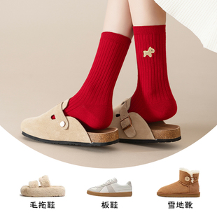 羊毛袜子女冬季 超厚中筒袜加绒加厚保暖棉袜睡眠条纹羊绒月子长袜