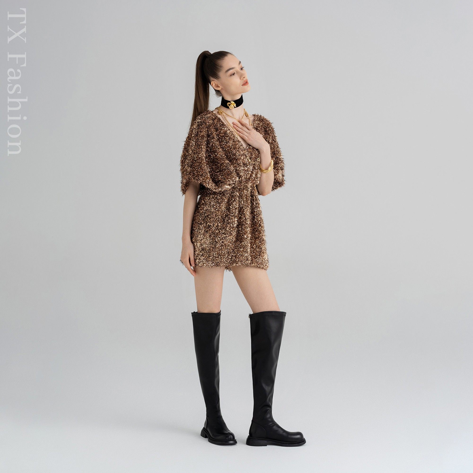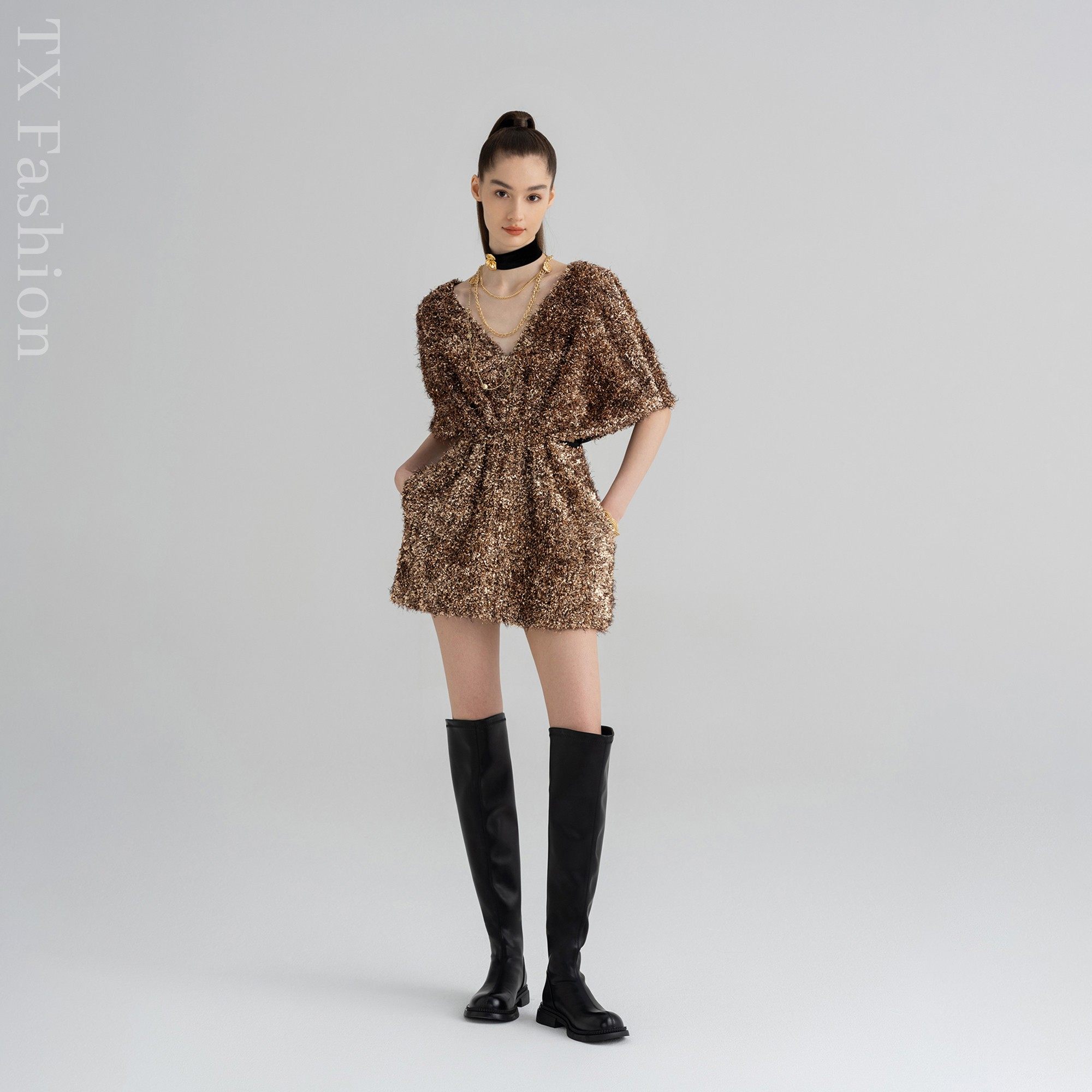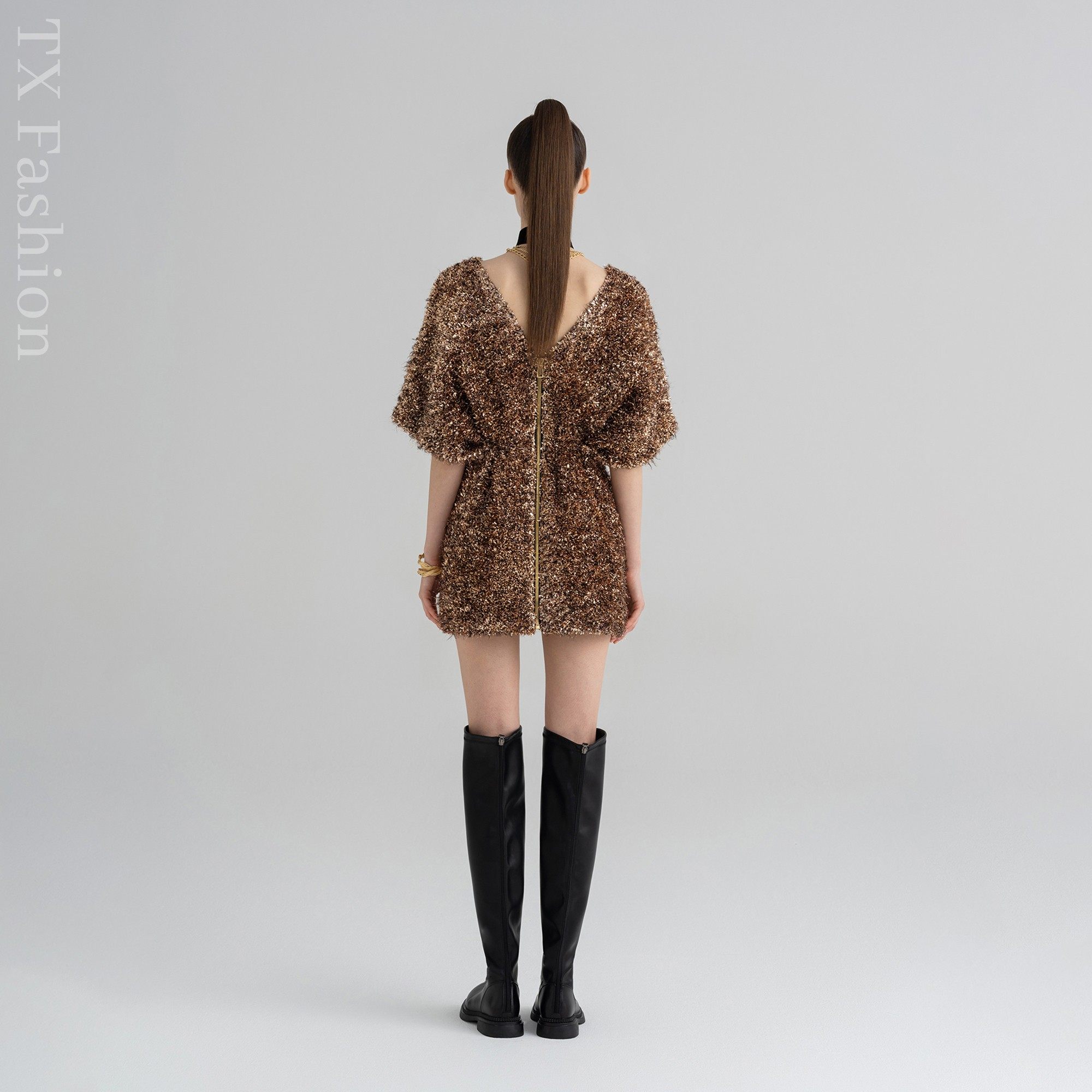 COLI全亮片纱线V领收腰外套裙气质短裙 意大利RUFFO YOLLA