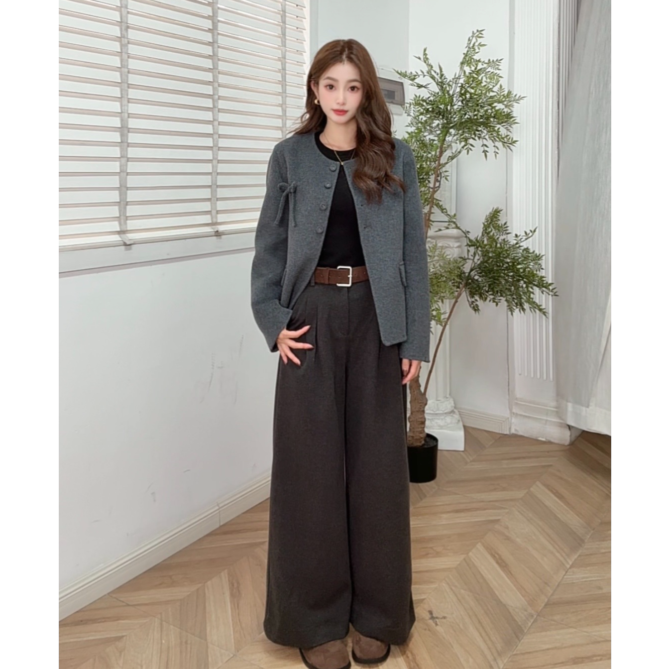 爱依服2025冬季 百搭阔腿裤 新款 复古时尚 子 显瘦气质高腰休闲裤 IEF