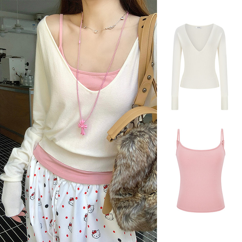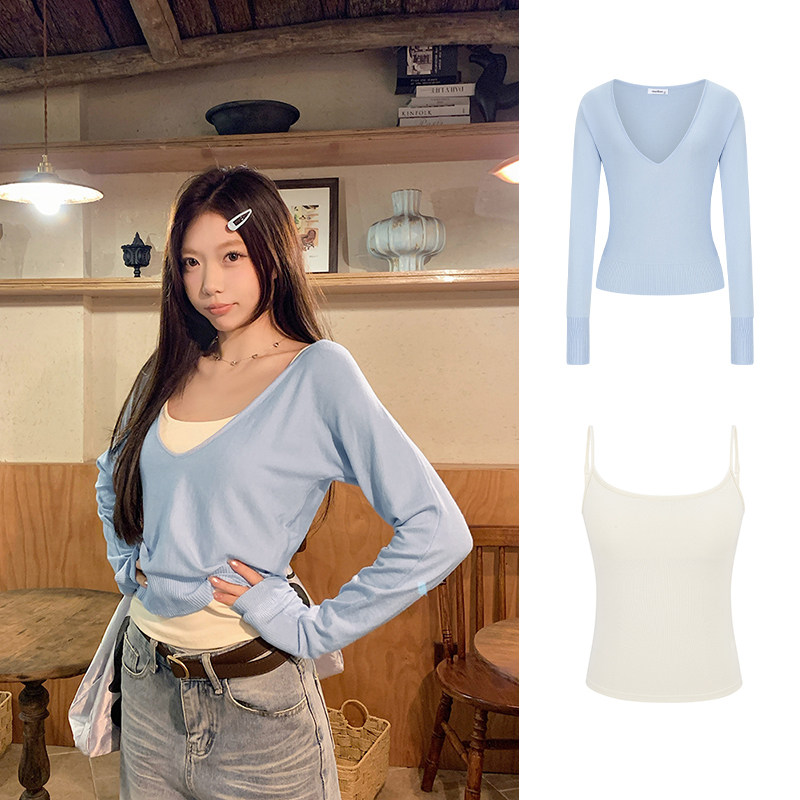 短款 MosesQueen魔西女王v领蝙蝠袖 叠穿长袖 女外搭罩衫 上衣 针织衫
