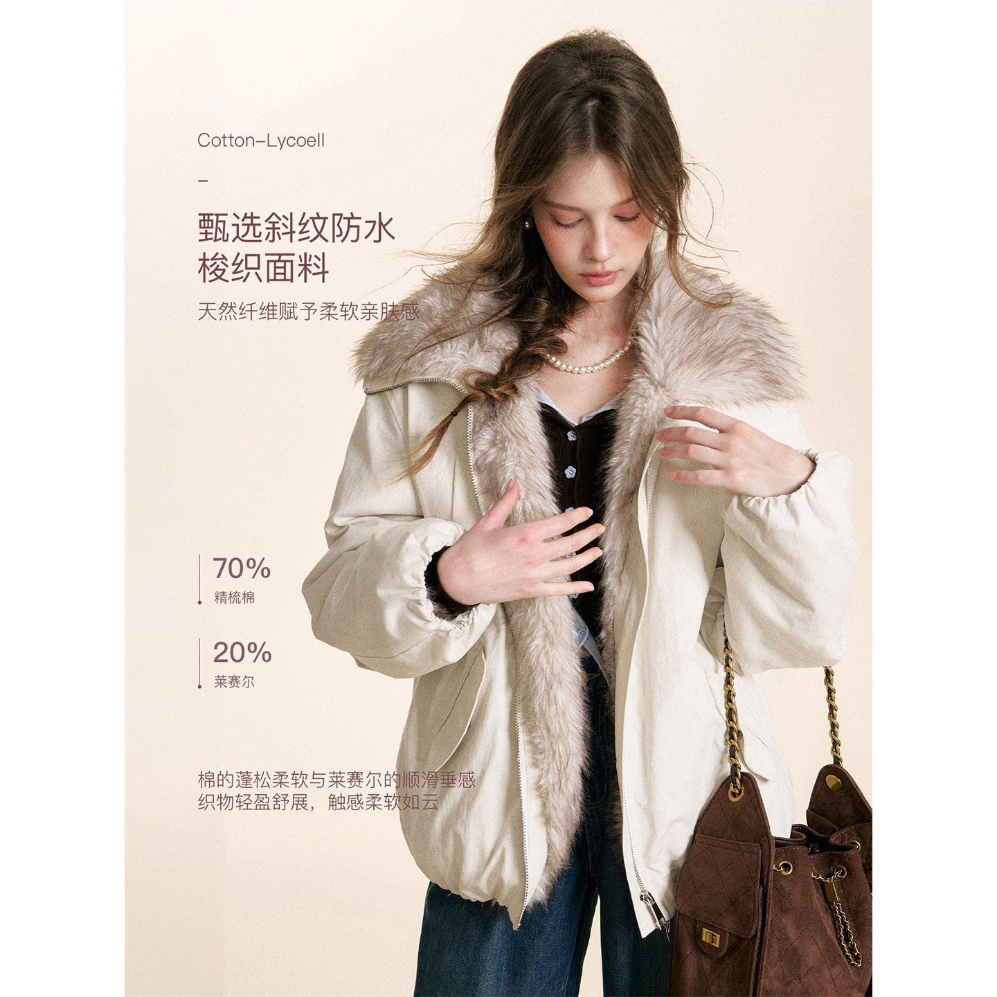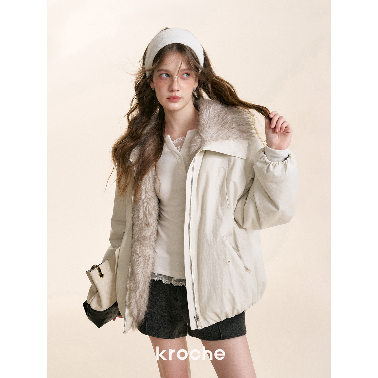 环保皮草大翻领保暖宽松派克服外套 莱赛尔天丝 卢昱晓同款 Kroche