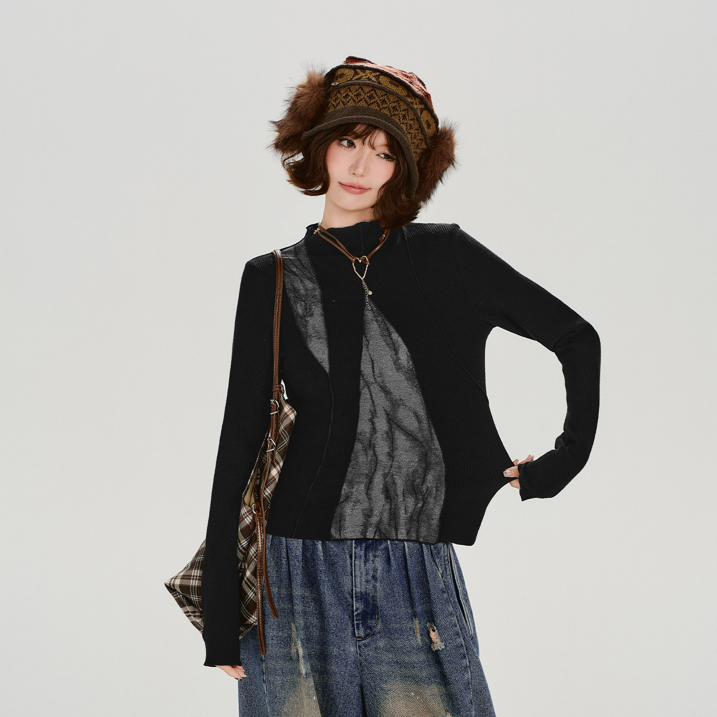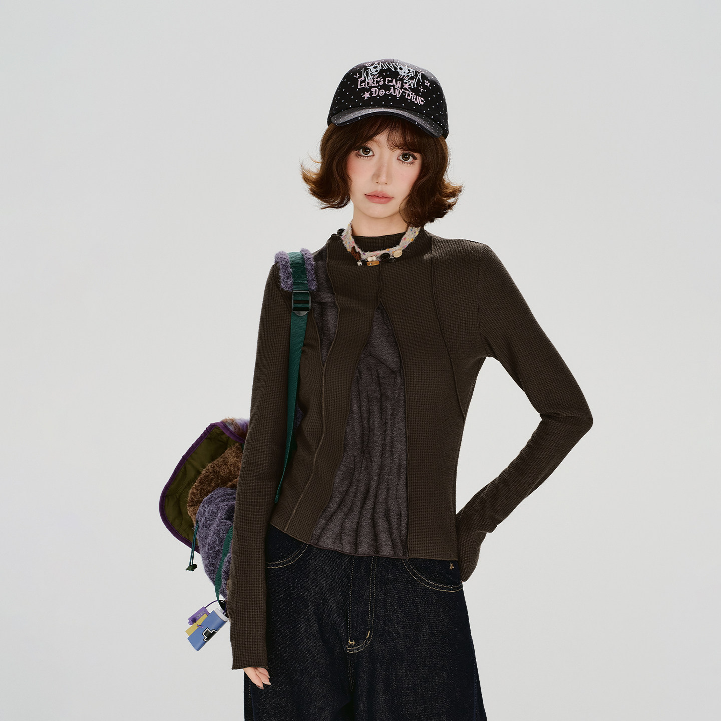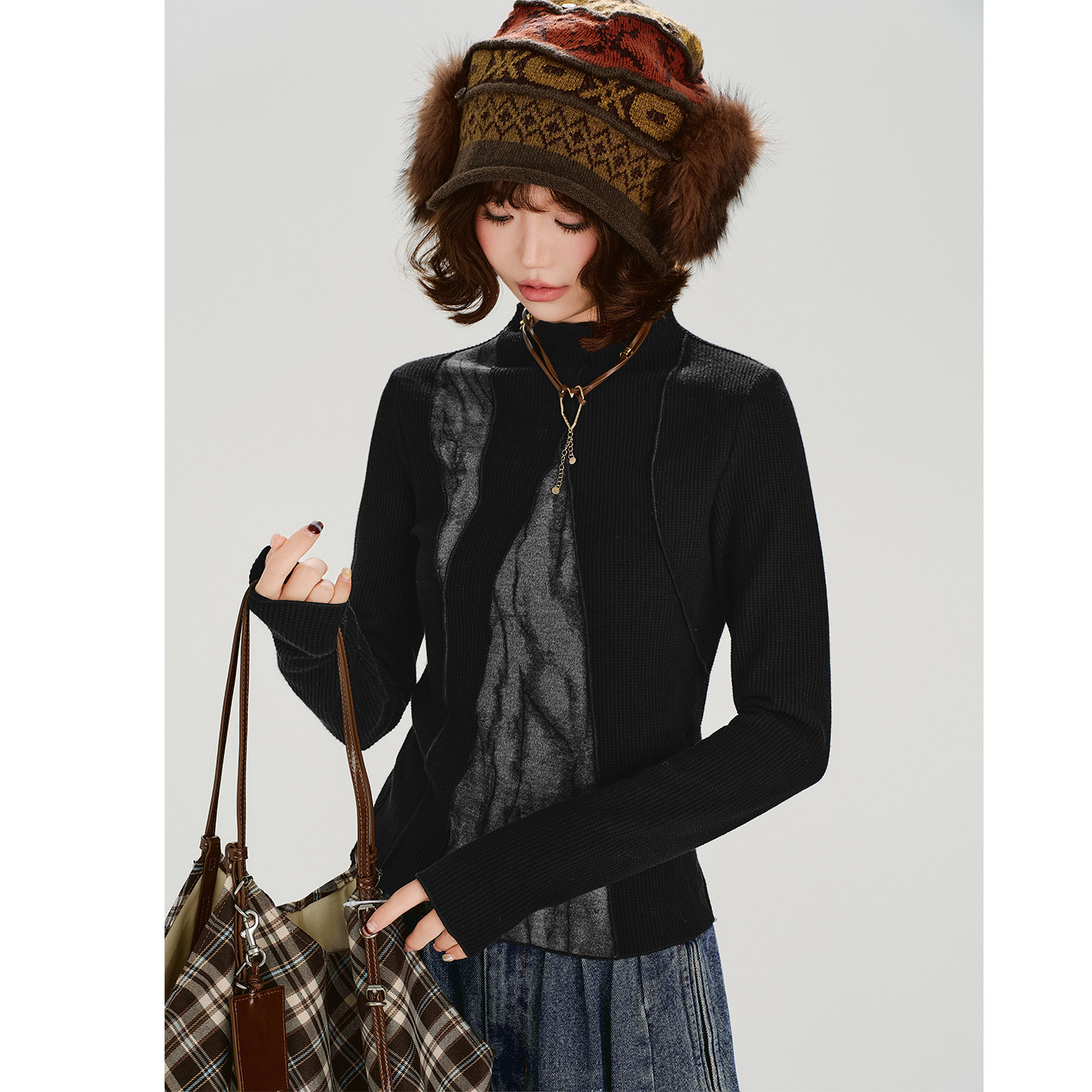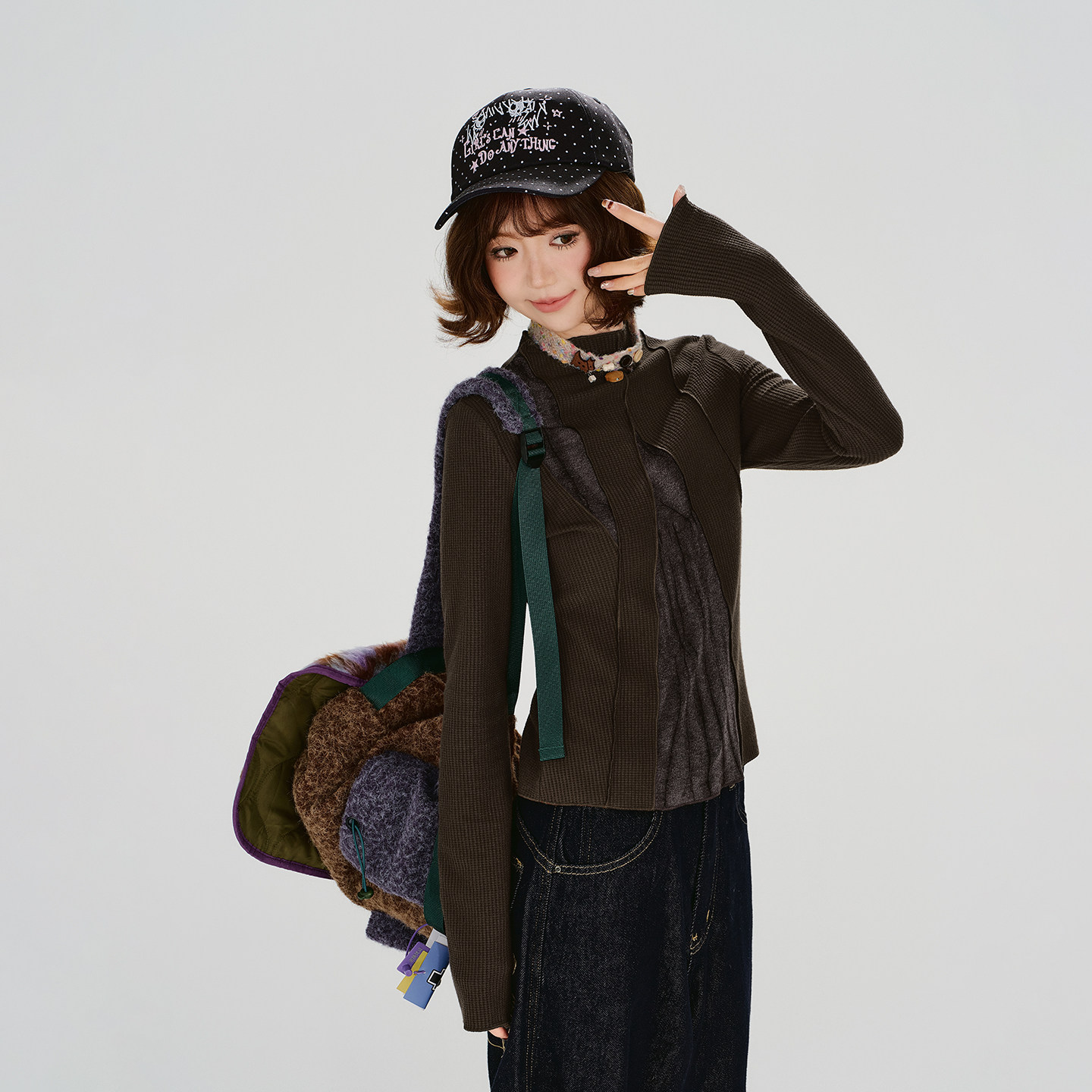 修身 Girlyhalo美式 新款 t恤女秋季 上衣 复古辣妹分割拼接设计感长袖