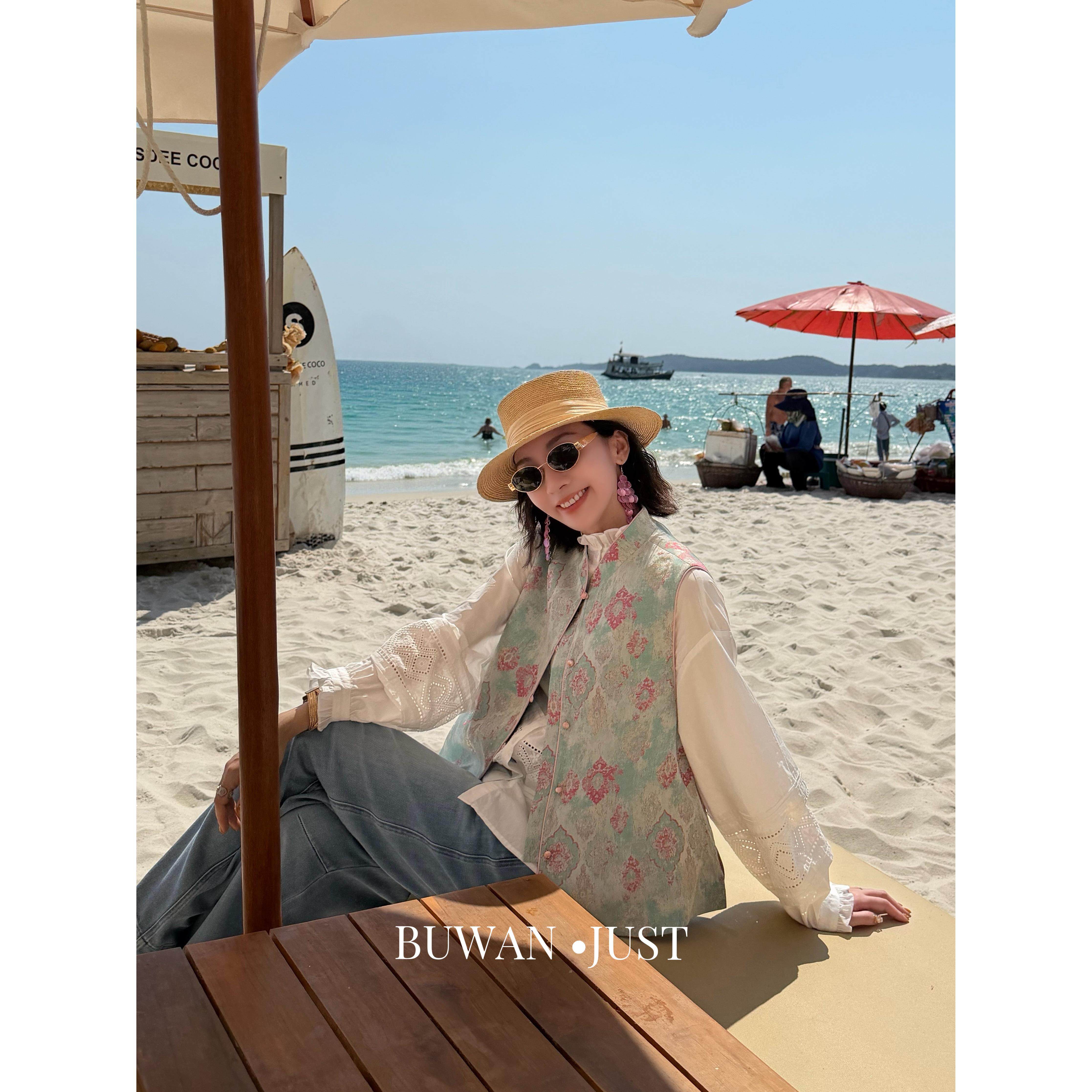 暗纹提花春意盎然马甲B2699 高定新中式 BUWANJUST 拾花记